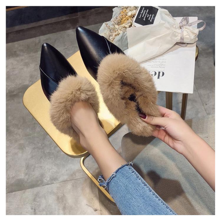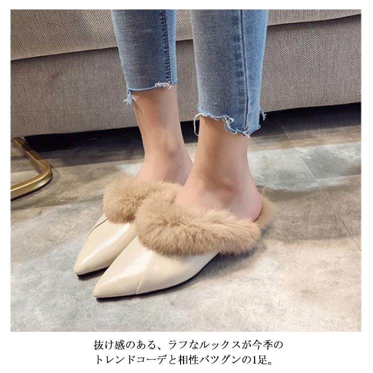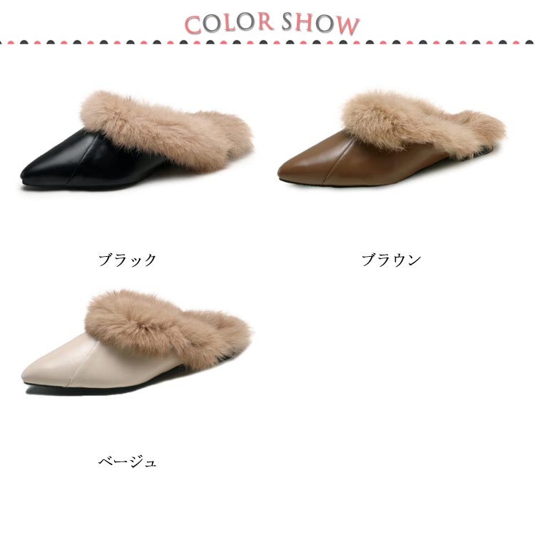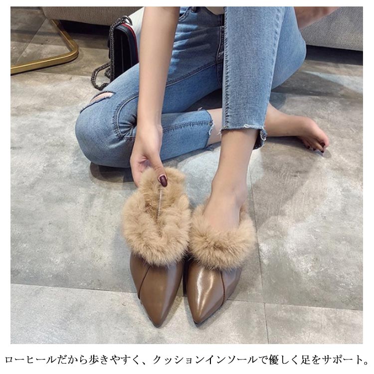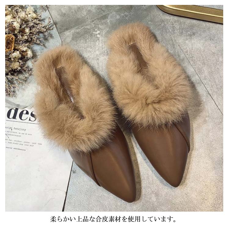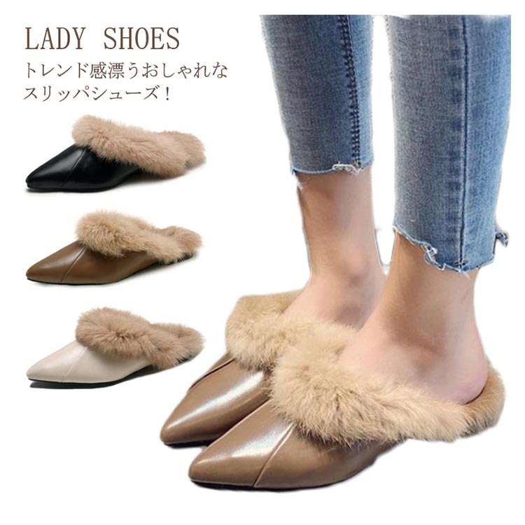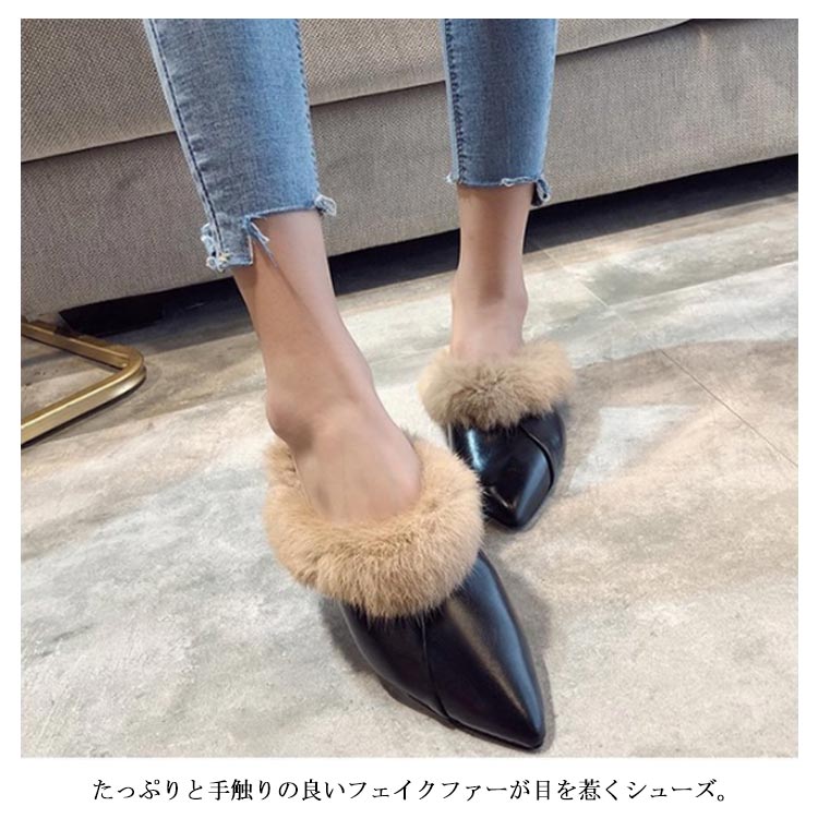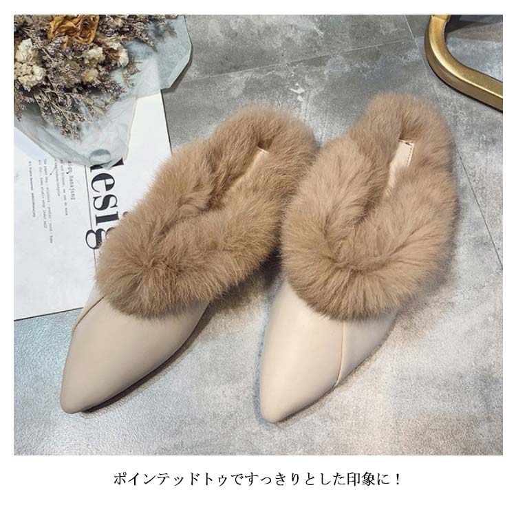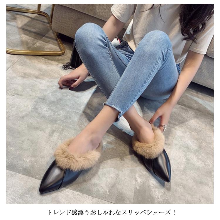 ポインテッドトゥ パンプス スリッパサンダル ローファー シューズ モカシン フェイク ファー サンダル スリッパシューズ レディース ローファー風 バブーシュ サンダル ミュール 秋冬