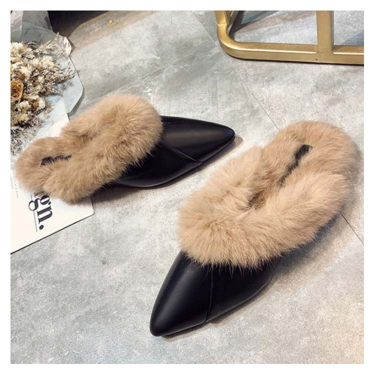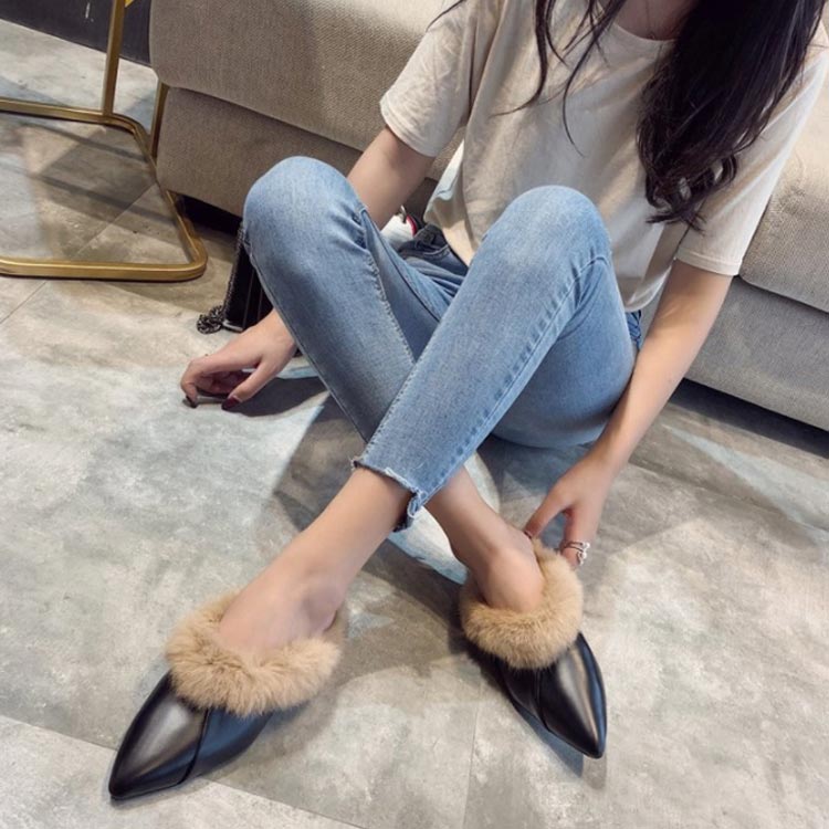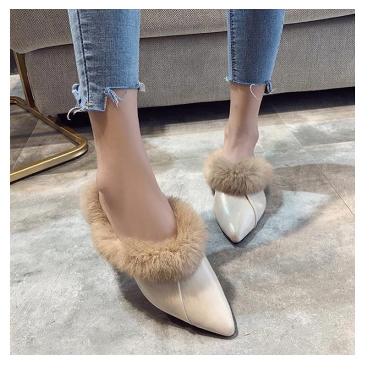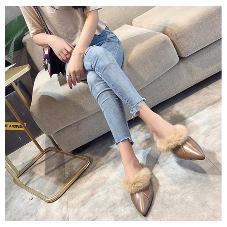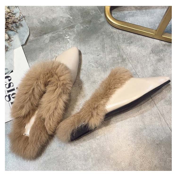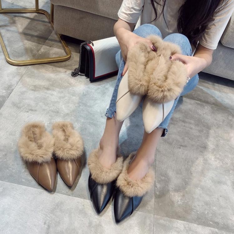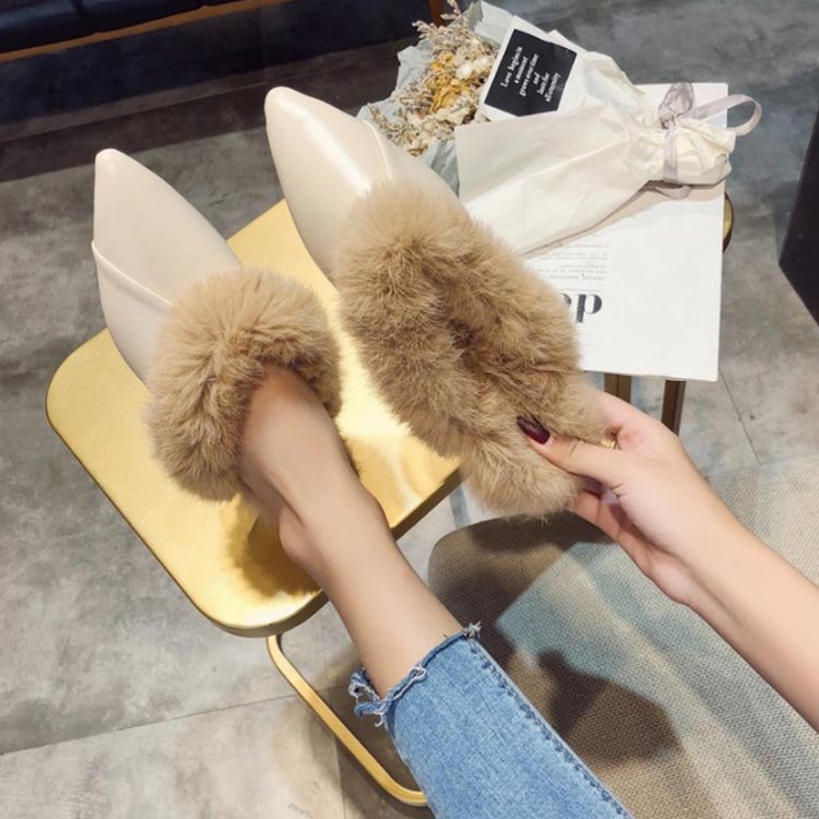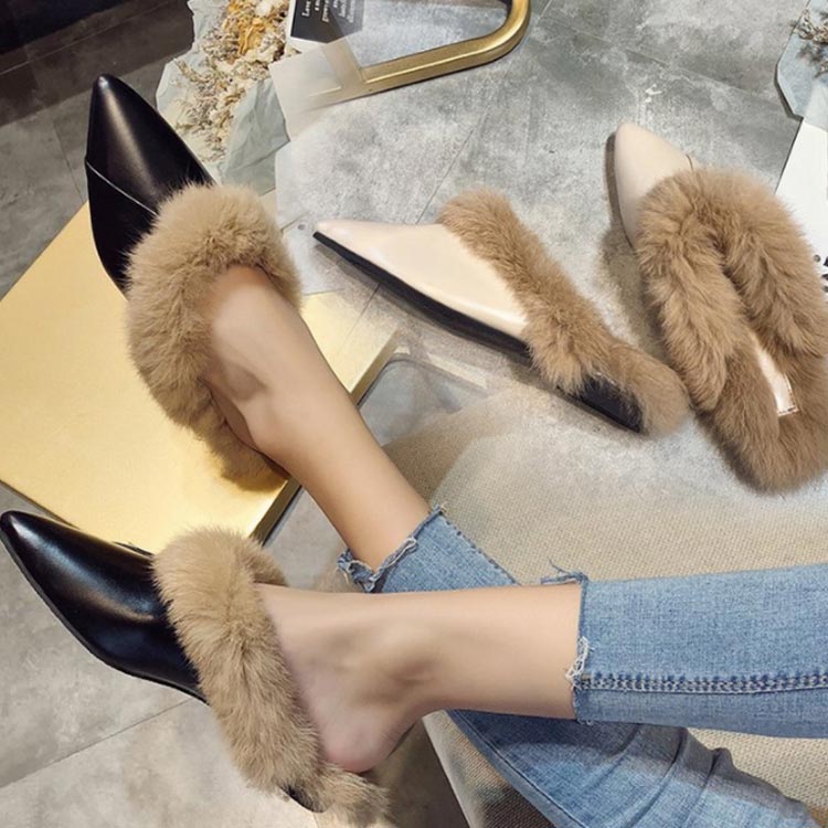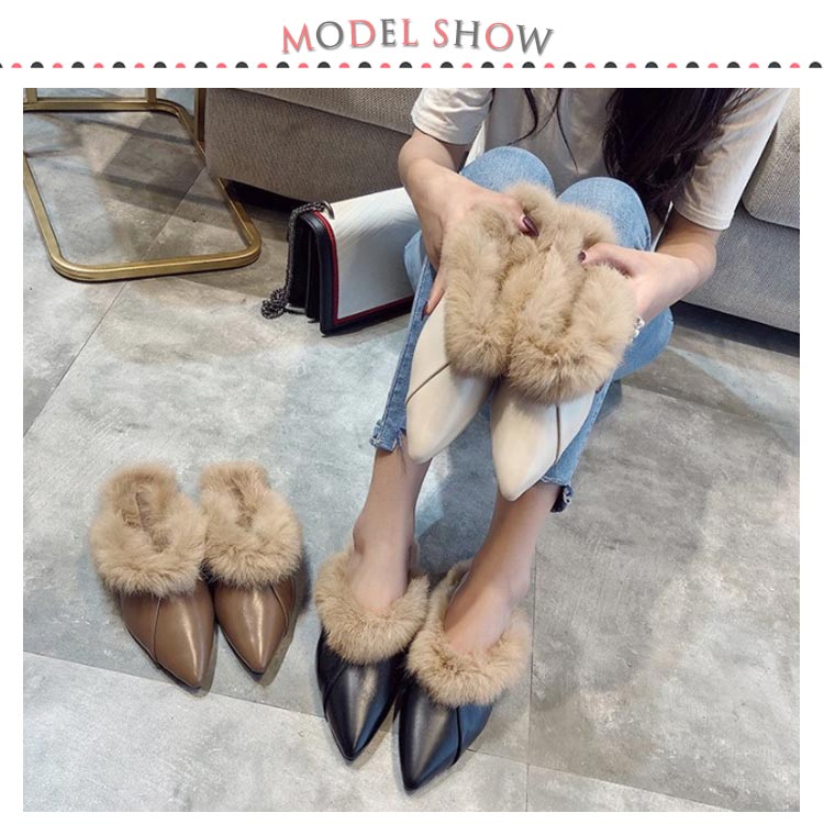 ポインテッドトゥ パンプス スリッパサンダル ローファー シューズ モカシン フェイク ファー サンダル スリッパシューズ レディース ローファー風 バブーシュ サンダル ミュール 秋冬