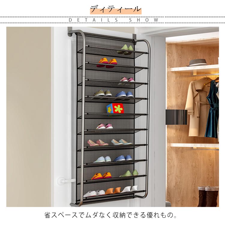 シューズラック 省スペース スリム 大容量 10段 シューズラック 扉裏 引っ掛け 靴 収納 シューズ ラック メッシュ 扉 ドア おしゃれ 下駄箱 シューズボックス 靴箱 省スペース 薄型