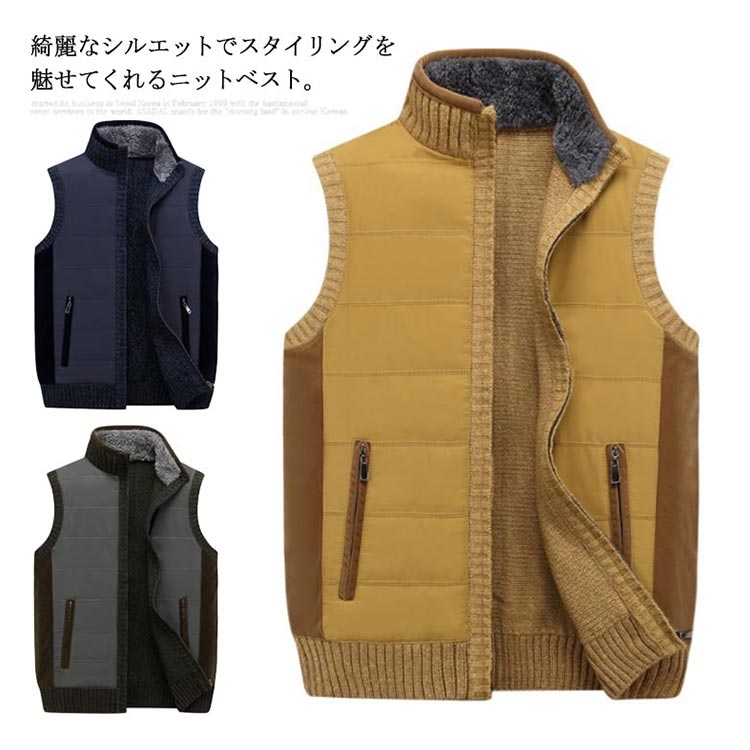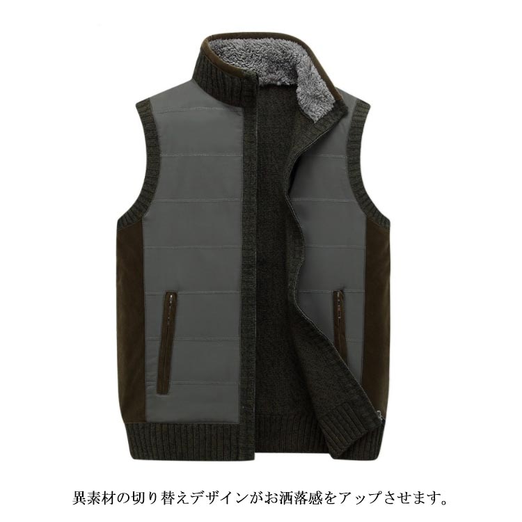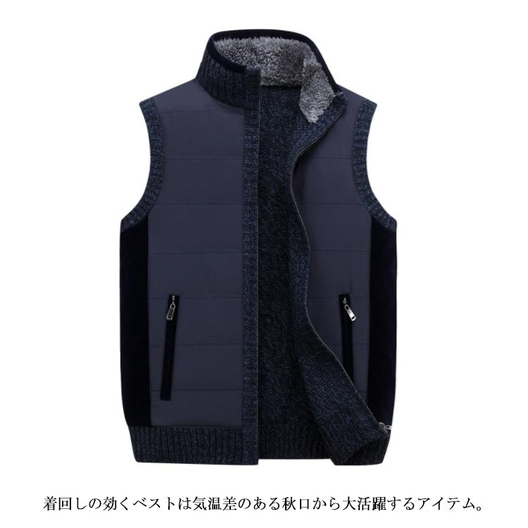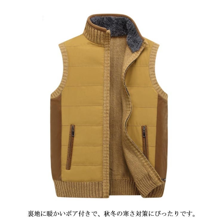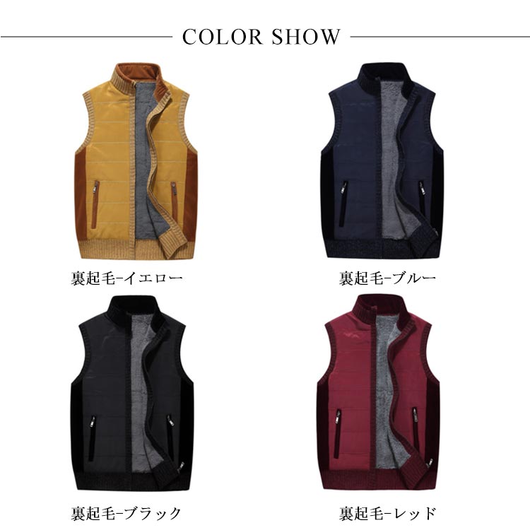 ベスト メンズ 裏ボア ジレベスト チョッキ トップス 裏起毛 無地 切り替え ポケット付き 防寒 保温 秋冬物 あったか 大きいサイズ お洒落