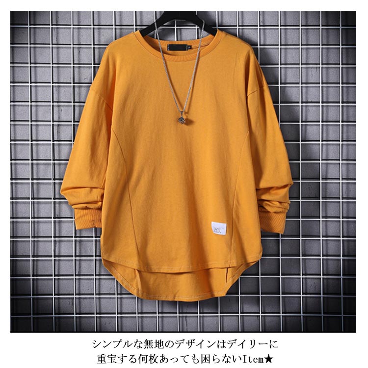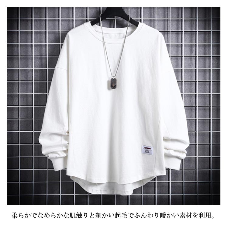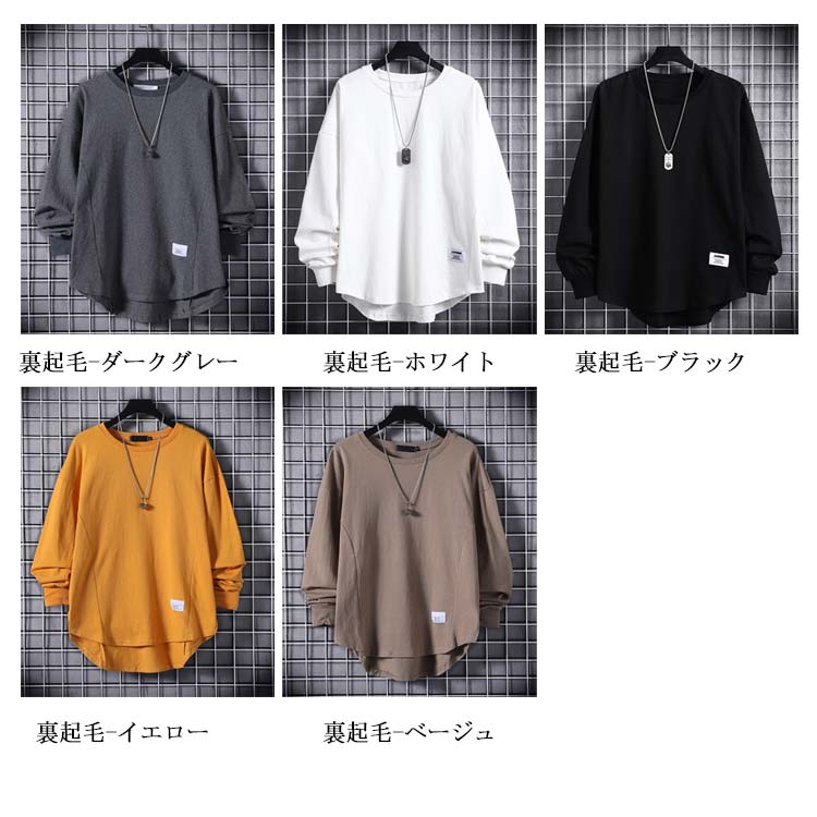 Tシャツ メンズ 長袖 裏起毛 トップス カットソー 秋冬物 カジュアル シンプル 大きいサイズ ゆったり 無地 ブルオーバー お洒落 フェミニン