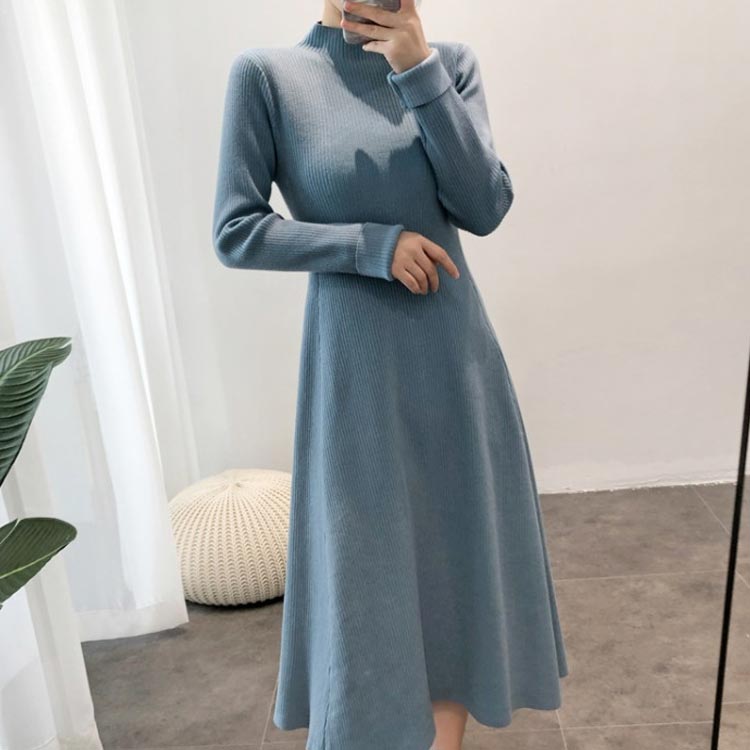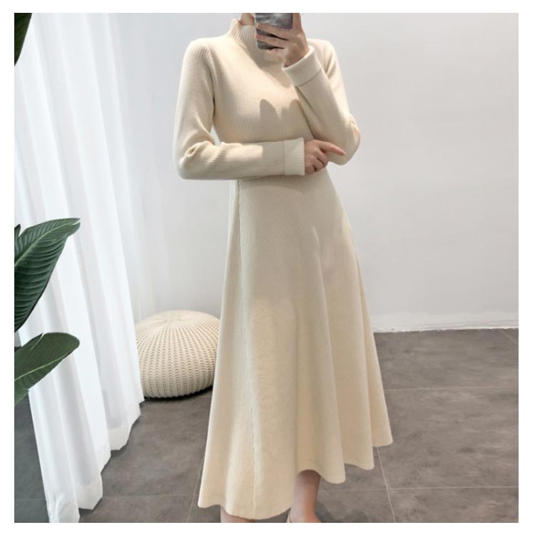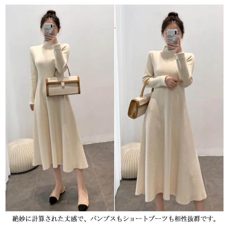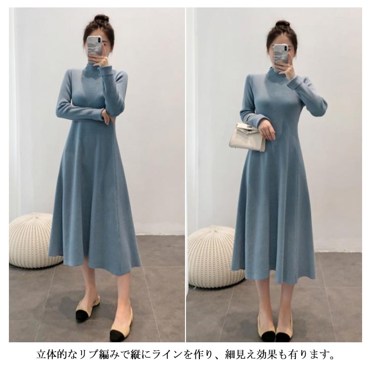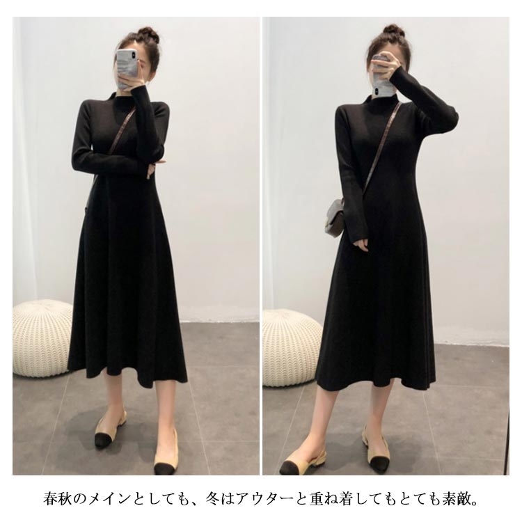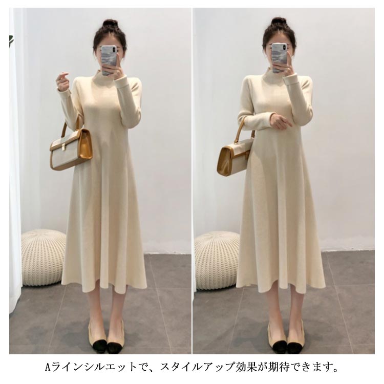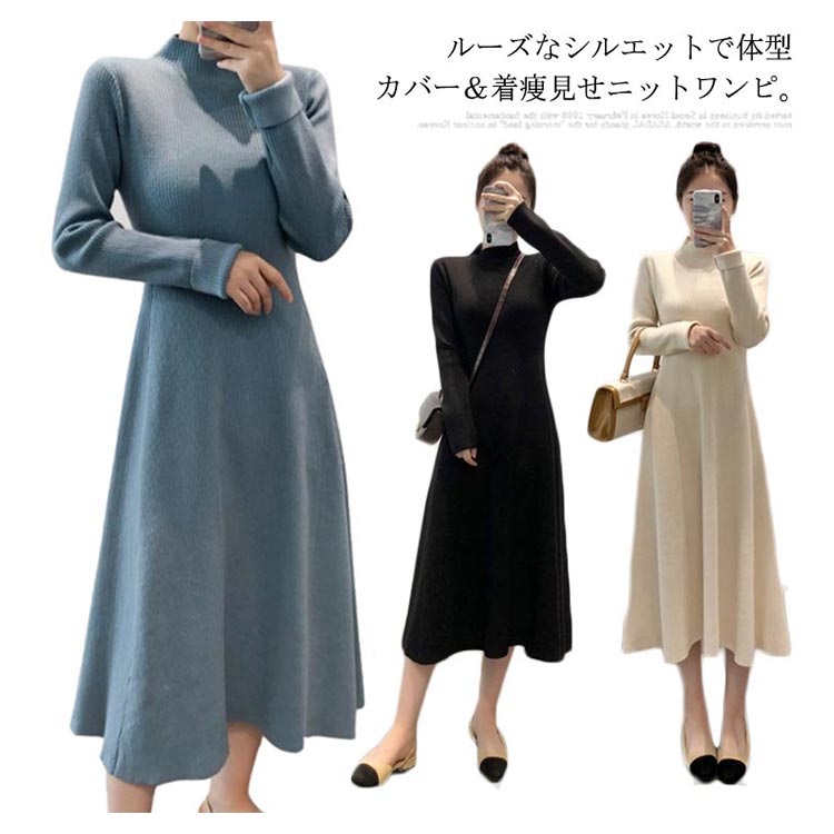 ワンピース ニットワンピ リブニット ロングワンピース レディース Aライン 長袖 ミモレ丈 大人女子 体型カバー ゆったり リラックス感 着痩せ お洒落