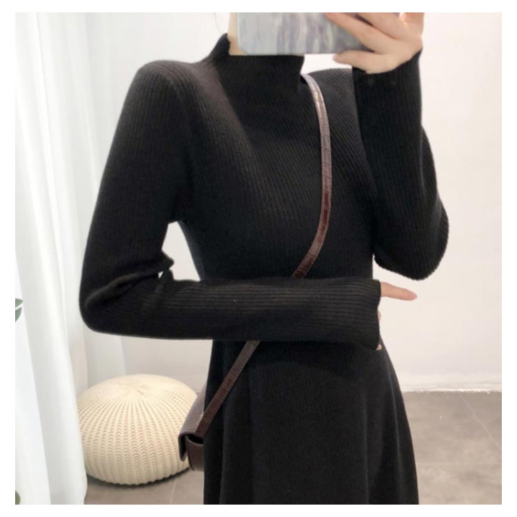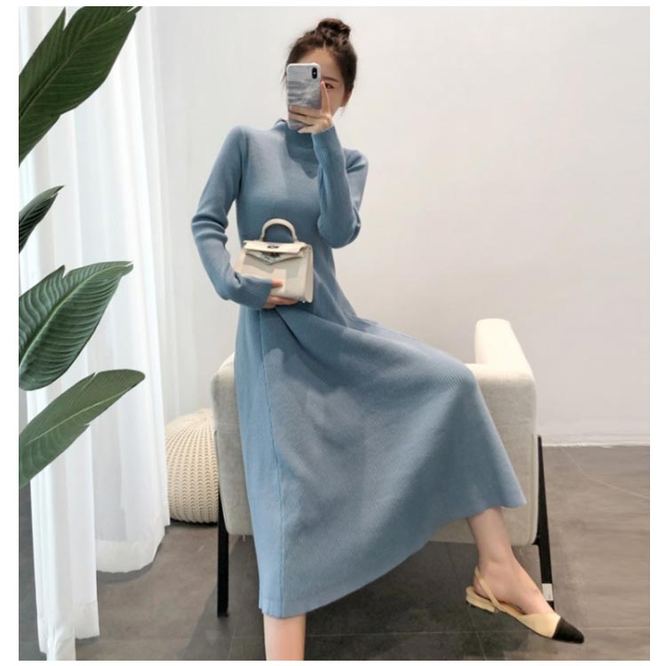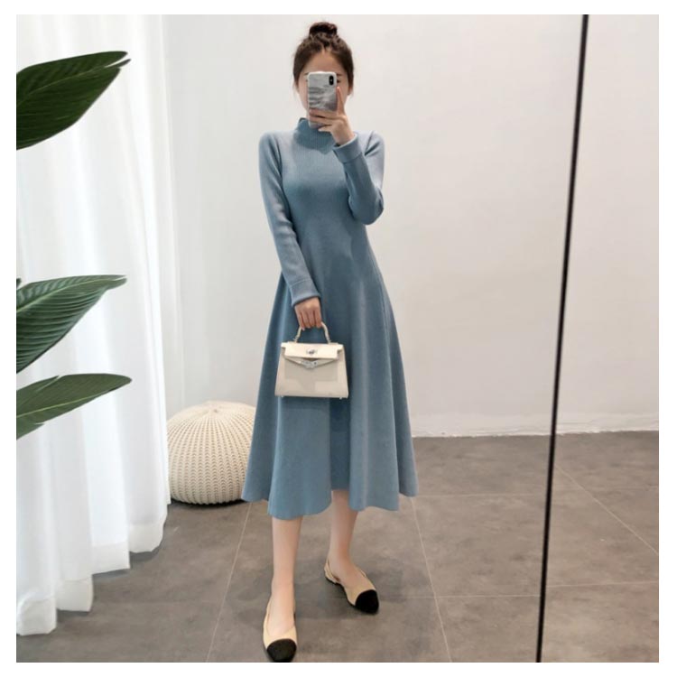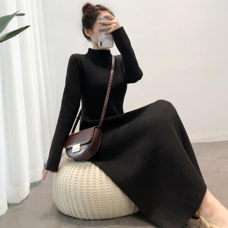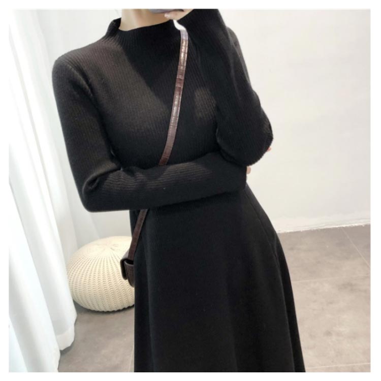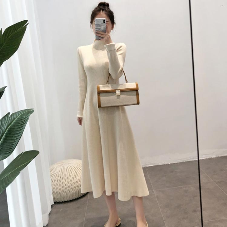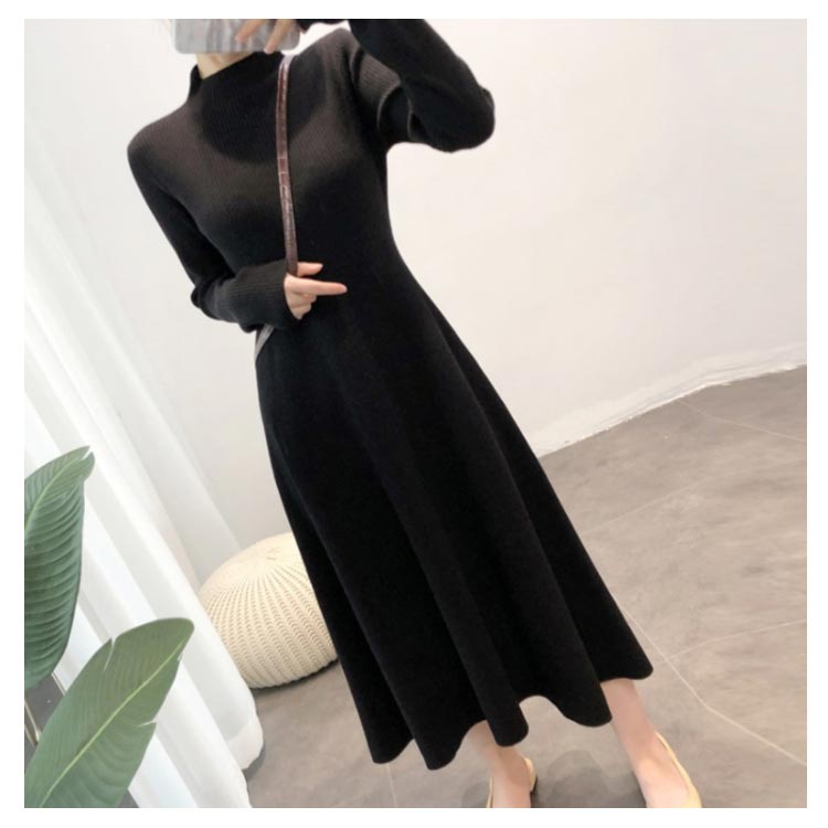 ワンピース ニットワンピ リブニット ロングワンピース レディース Aライン 長袖 ミモレ丈 大人女子 体型カバー ゆったり リラックス感 着痩せ お洒落