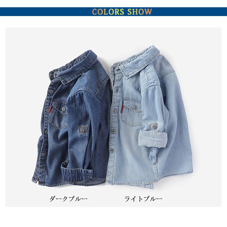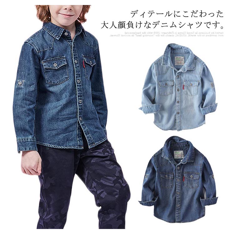 デニムシャツ 男の子 子供服 長袖 カジュアルシャツ トップス ジュニア キッズ服 春物 通学 通園 お洒落 新作 100 110 120 130 140 150 160