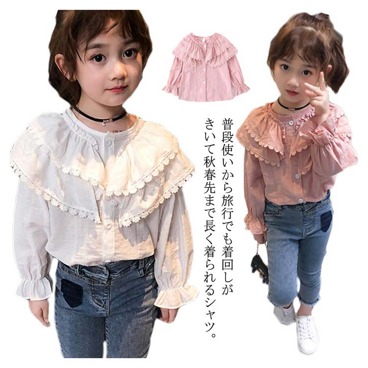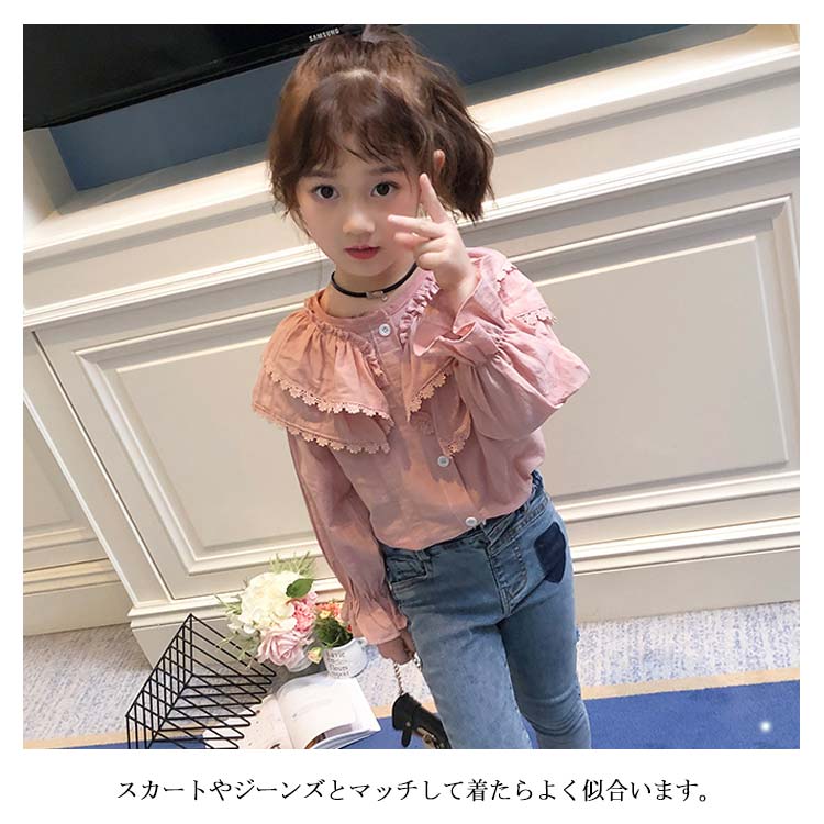 ブラウス 子供服 シャツ 女の子 長袖 トップス カジュアルシャツ ガールズ キッズ服 シンプル 春秋 ファッション感 入学式 入園式 卒業 可愛い 90cm 100cm 110cm 120cm 130cm 140cm