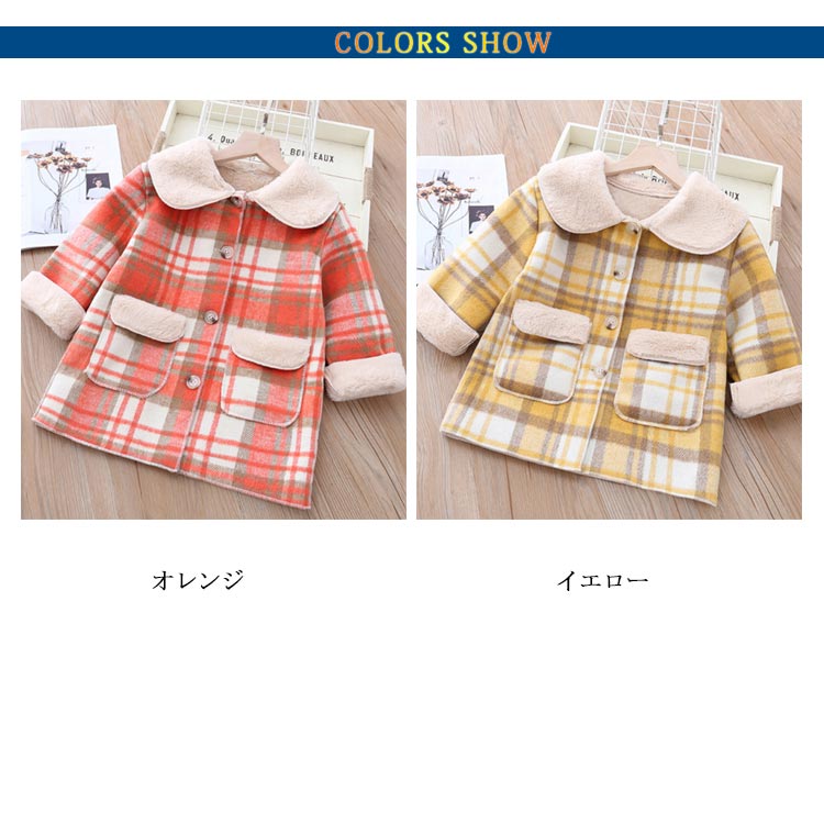 | チェック柄も可愛い季節感たっぷりのロングコート♪ レトロ感のあるデザインが女の子らしさをUPしてくれるデザインです。 裏ボアなので冬でもあったかポカポカ、防寒性に大変優れています。 落ち着いたイエローと鮮やかなレッドの2色をご用意しました。 通園や通学、デイリーのオシャレにお薦めのアイテムですよ♪ | |
