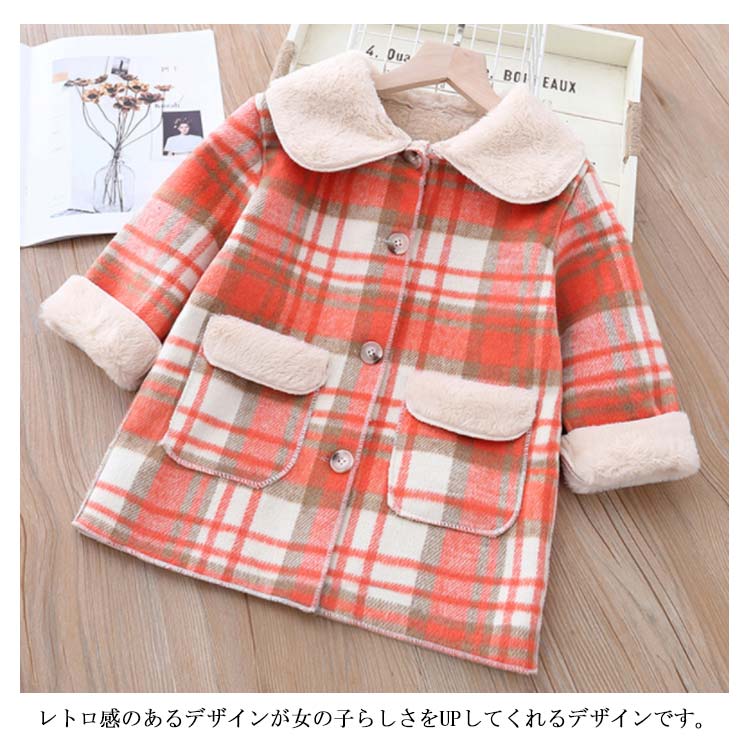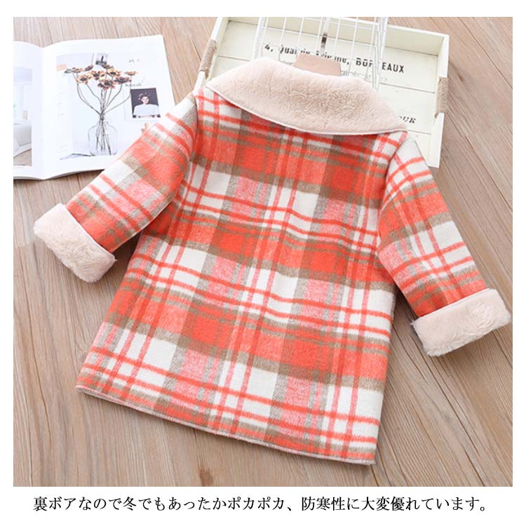 ロングコート チェック柄 女の子 アウター 子供服 裏ボア キッズ服 お洒落 可愛い ポケット付き あったか ゆったり 防寒 冬物 90cm 100cm 110cm 120cm 130cm