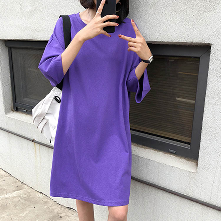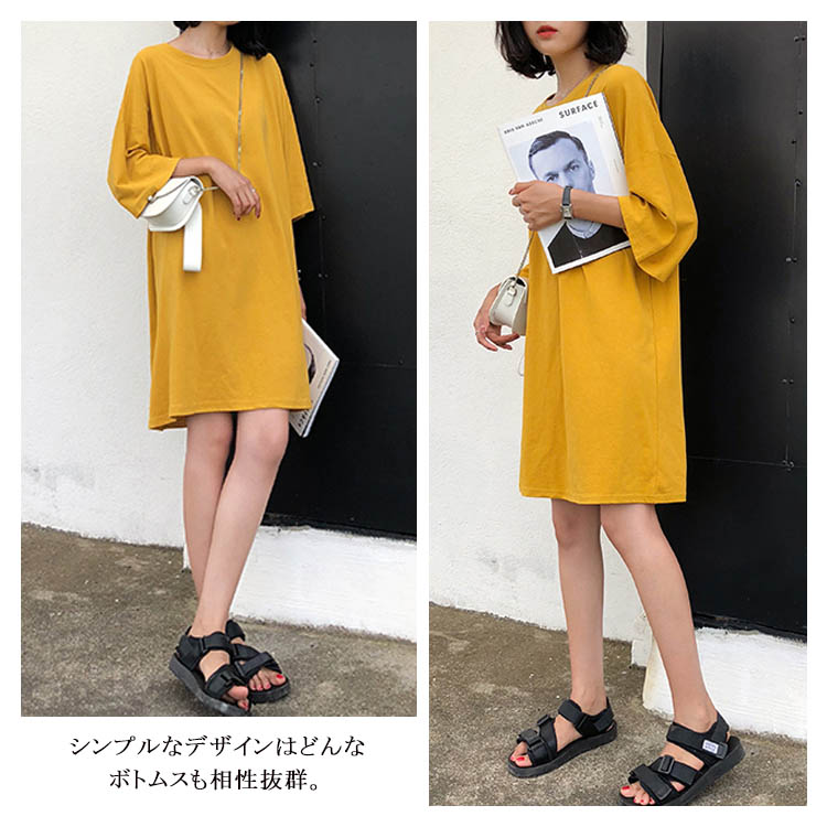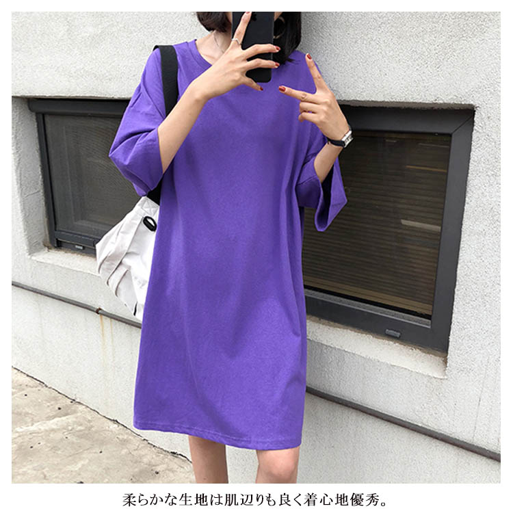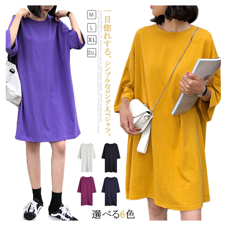 送料無料 ロングTシャツ Tシャツ レディース 半袖 ゆったり ドロップ 無地 ボートネック おしゃれ ヒップホップ ダンス衣装 大きいサイズ