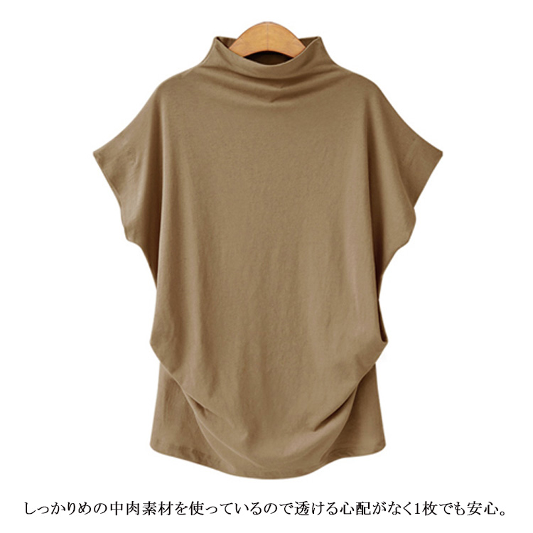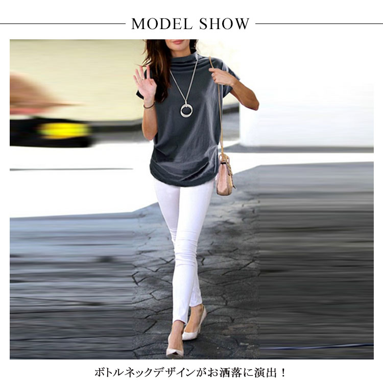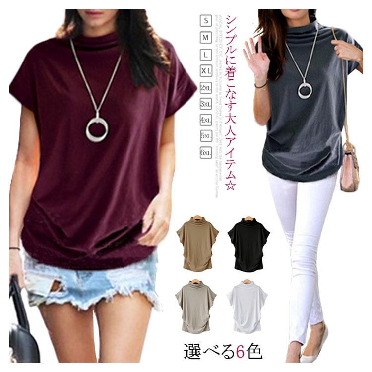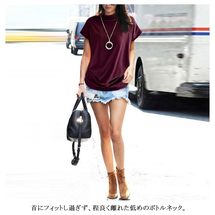 【9サイズ*全6色】送料無料 Tシャツ ボトルネック カットソー レディース 半袖 トップス 大きいサイズ ゆったり 春夏 ロング丈