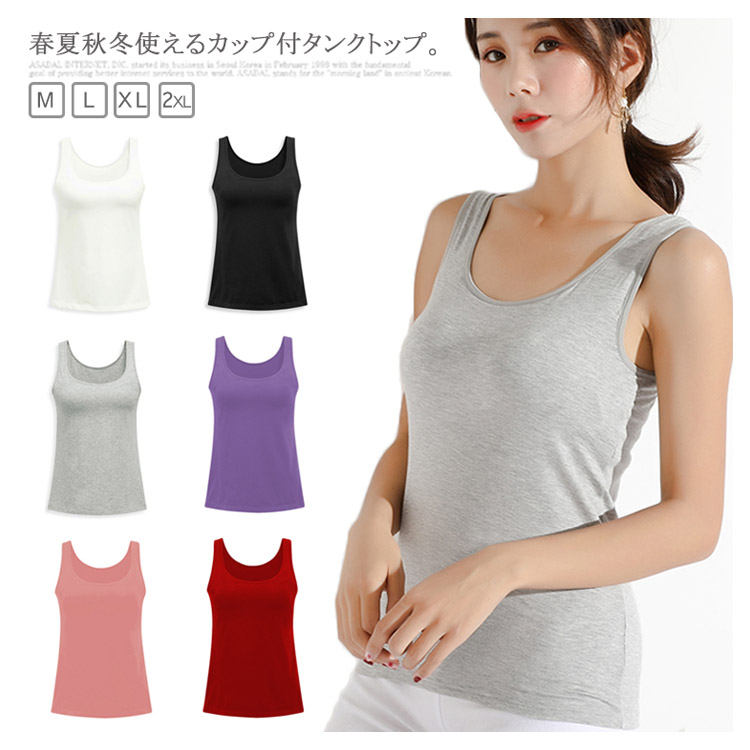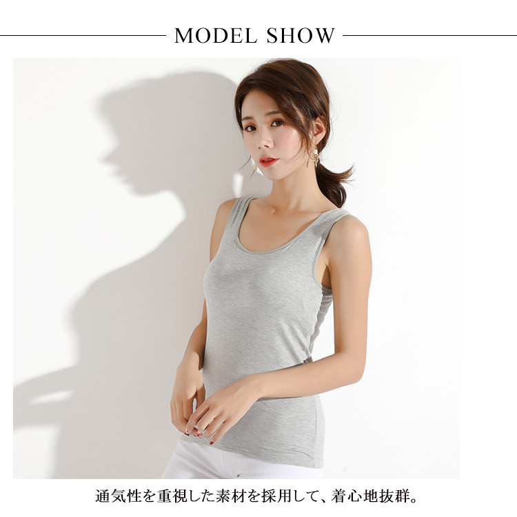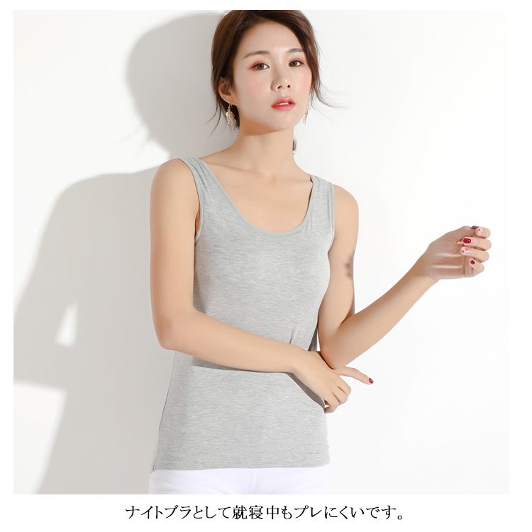 | 春夏秋冬使えるカップ付タンクトップ。 通気性を重視した素材を採用して、着心地抜群。 アンダーゴムでしっかりバストをサポート! ナイトブラとして就寝中もプレにくいです。 立体カップで美しいバストラインを演出する。 普段使い・お仕事・スポーツにも! | |