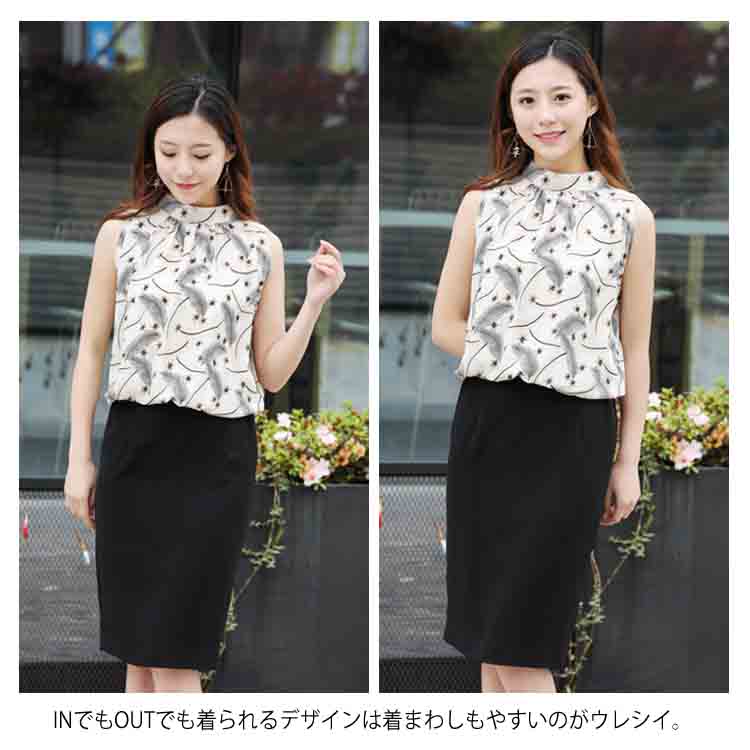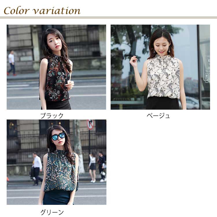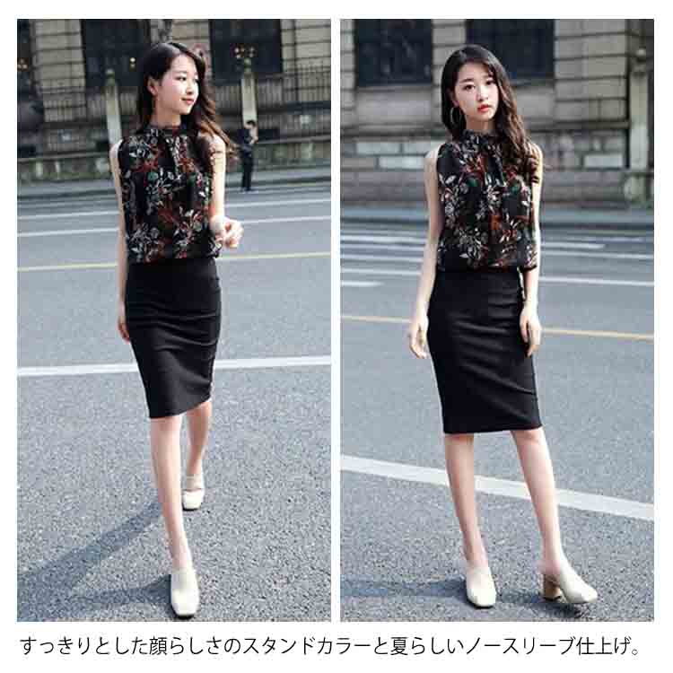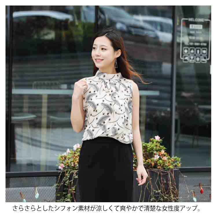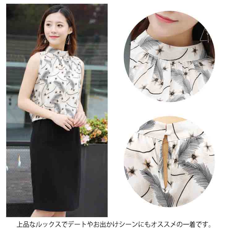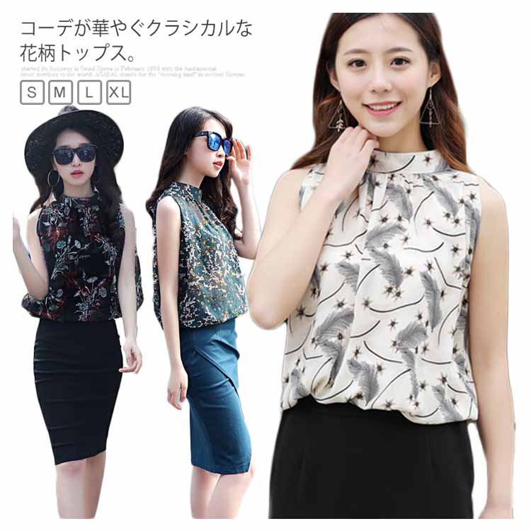 《送料無料》全3color!裾ゴム入り 花柄ブラウス レディース ノースリーブ トップス ブラウス ノースリーブ 花柄 夏服 スタンドカラー ゆったり 薄手 おしゃれ 女性 春 夏