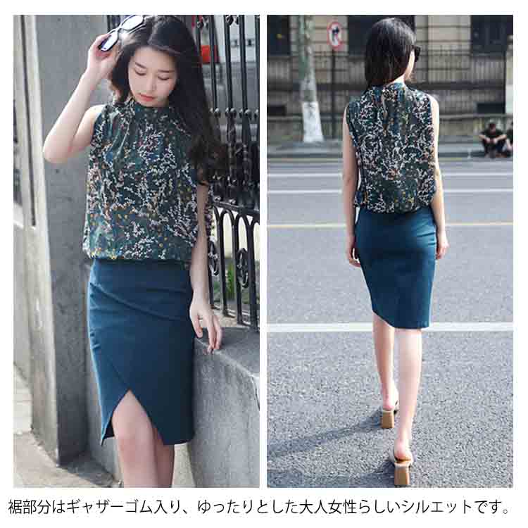 | コーデが華やぐクラシカルな花柄トップス。 すっきりとした顔らしさのスタンドカラーと夏らしいノースリーブ仕上げ。 バックワンボタン使い、程度肌見せ効果を発揮します。 裾部分はギャザーゴム入り、ゆったりとした大人女性らしいシルエットです。 さらさらとしたシフォン素材が涼しくて爽やかで清楚な女性度アップ。 INでもOUTでも着られるデザインは着まわしもやすいのがウレシイ。 上品なルックスでデートやお出かけシーンにもオススメの一着です。 | |