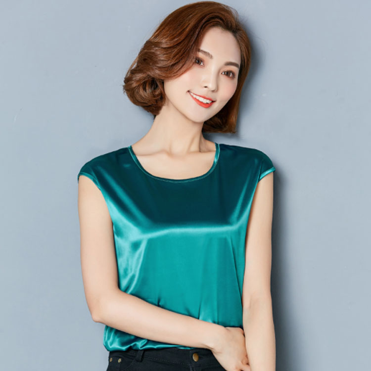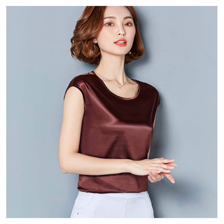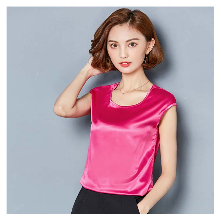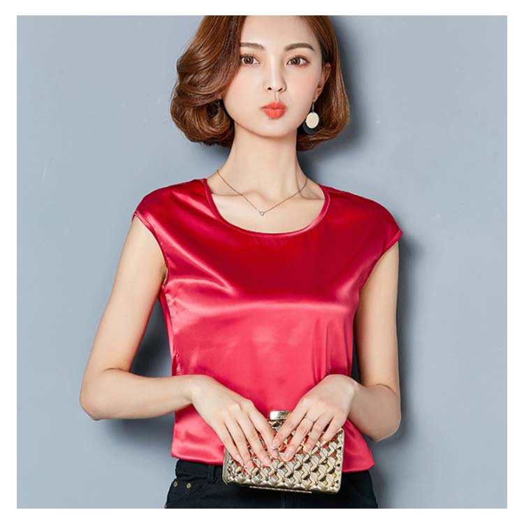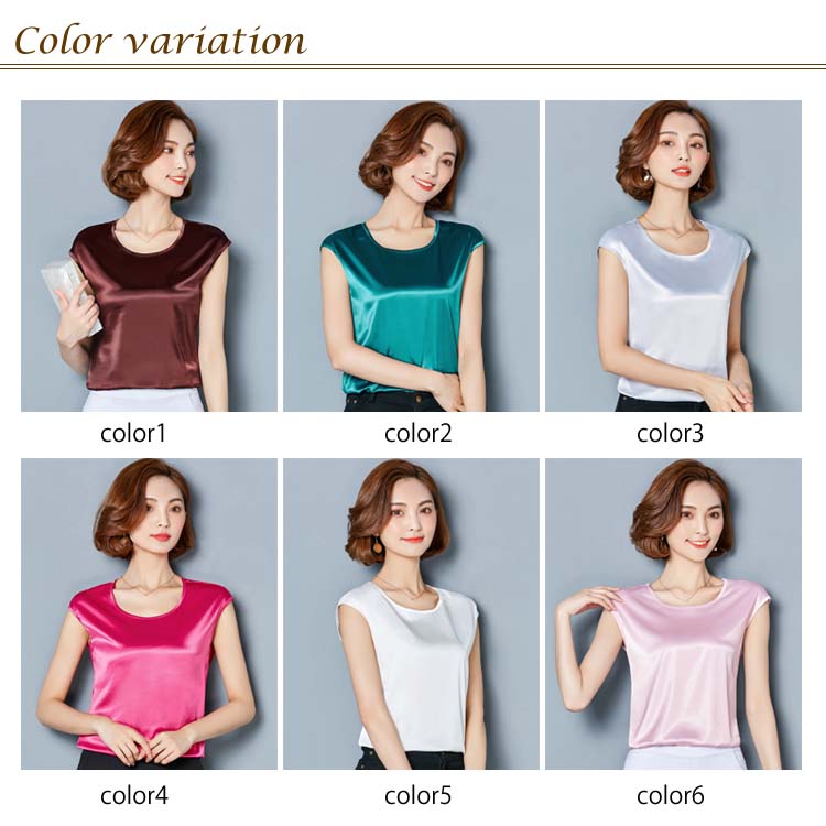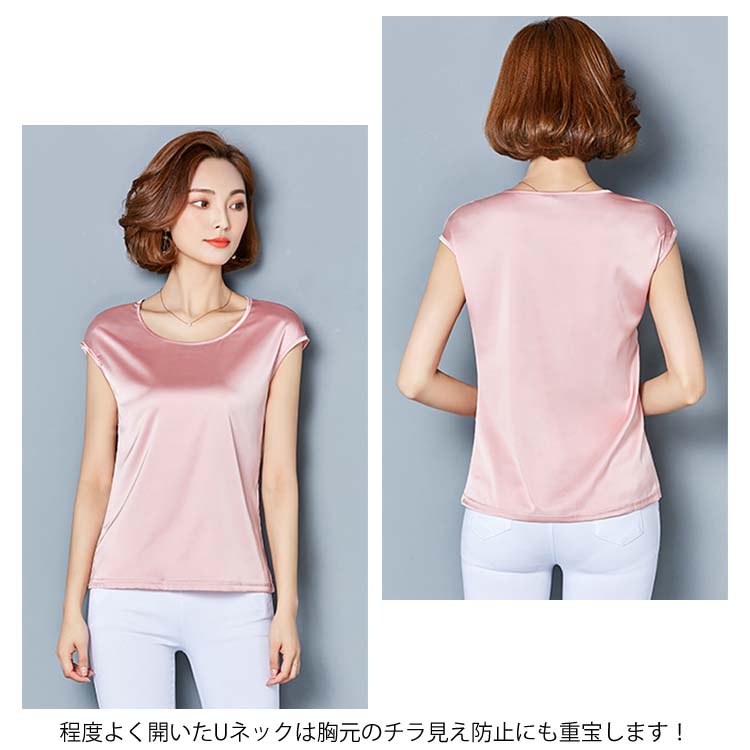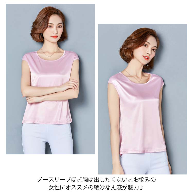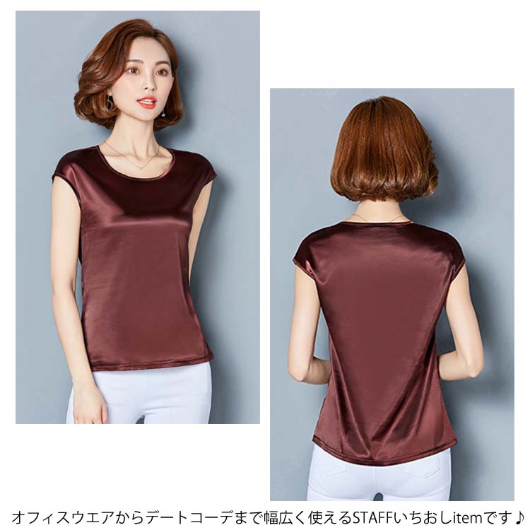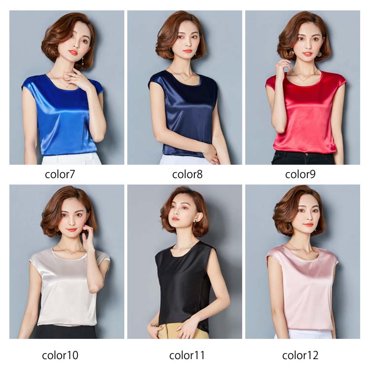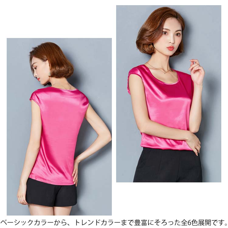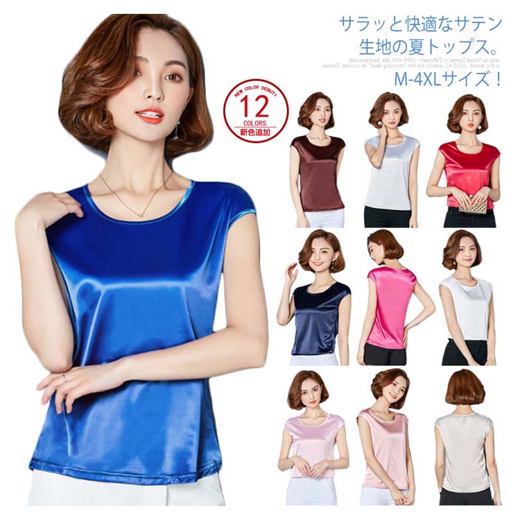 《送料無料》M-4XL!全12色展開!サテン調トップス レディース tシャツ トップス タンクトップ ノースリーブ 半袖 夏トップス 夏tシャツ 光沢感 サテン調 シルクタッチ 上品 夏物 夏 大きサイズ