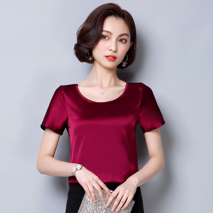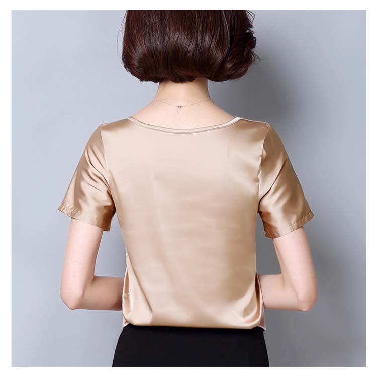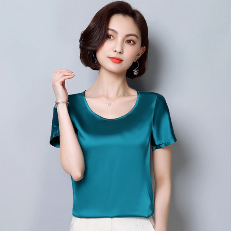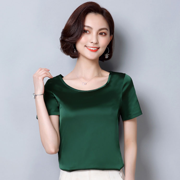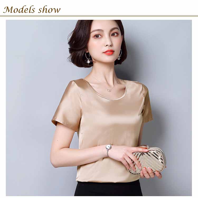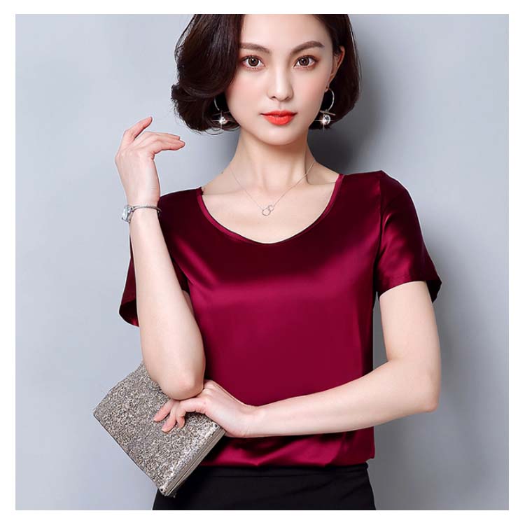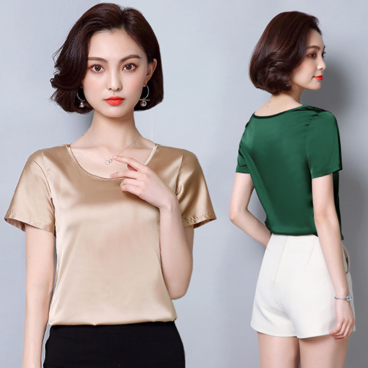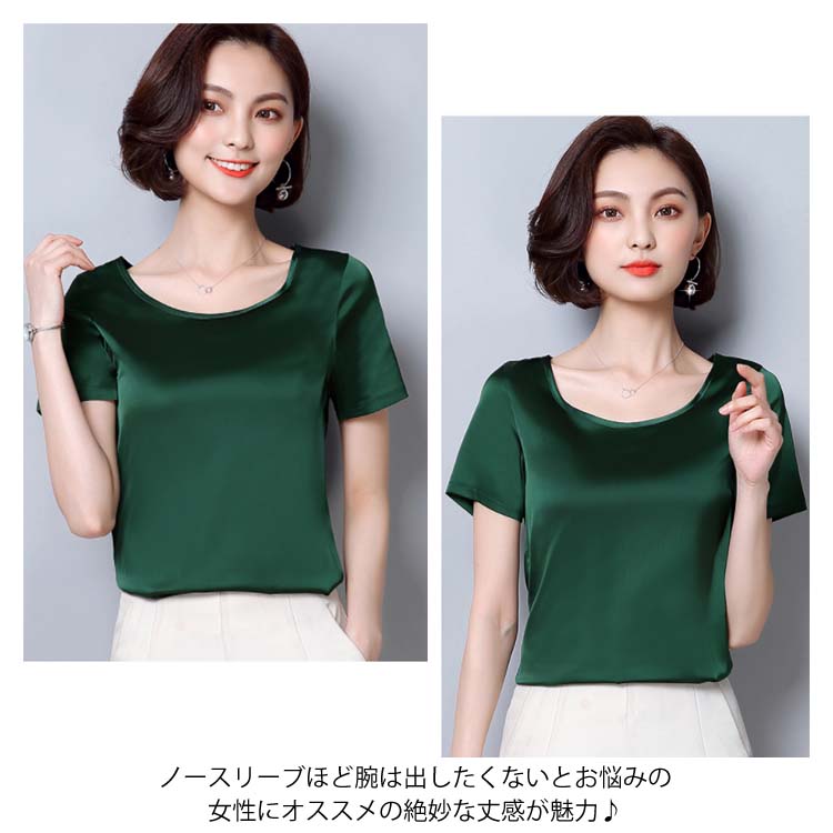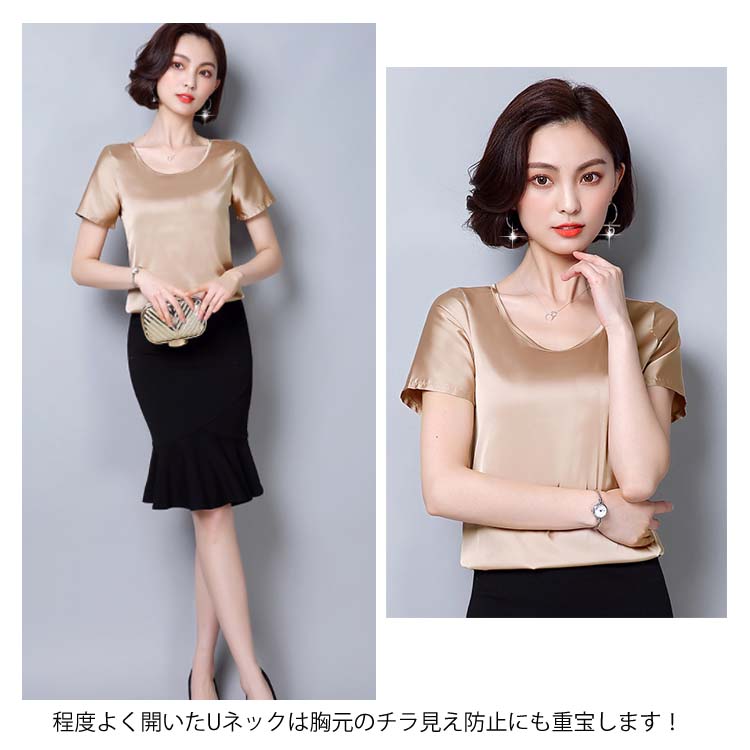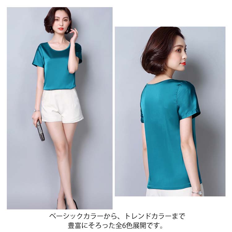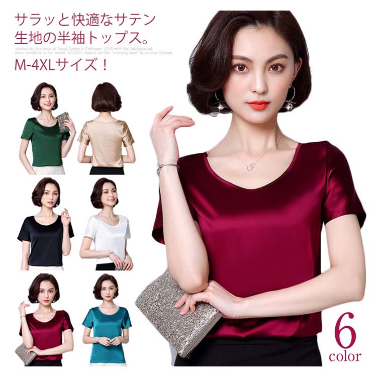 《送料無料》M-4XL×全6color!tシャツ カットソー レディース 半袖tシャツ Uネック 光沢感 サテン調 シルクタッチ トップス 半袖 シンプル 無地 夏 夏服 夏物 大きサイズ