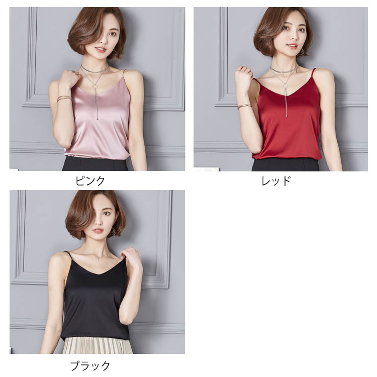 《送料無料》全7色×5サイズ!キャミソール Vネック ノースリーブトップス Vネックキャミソール インナー トップス キャミ シンプル 無地 大きサイズ 夏 夏服 夏物 光沢感 セクシー 大人 女性