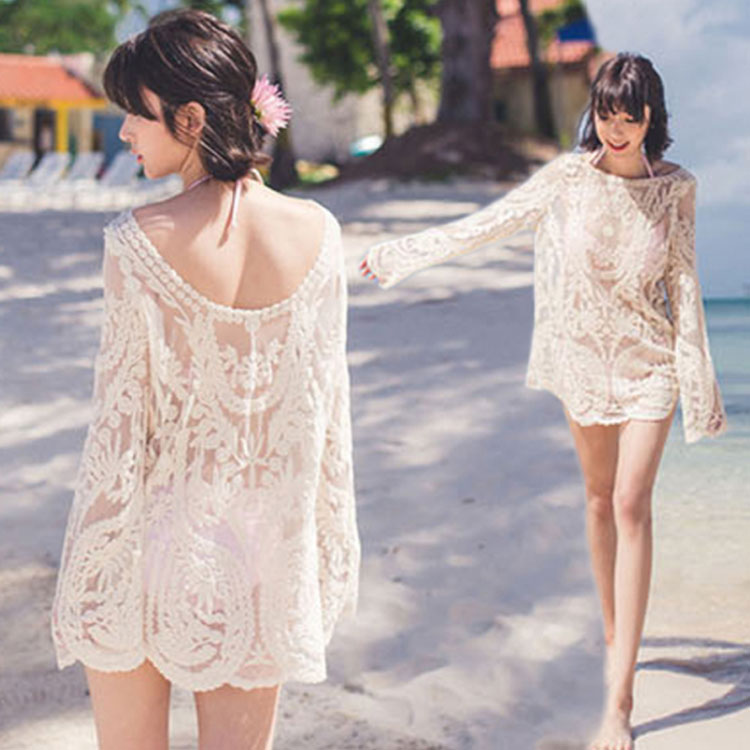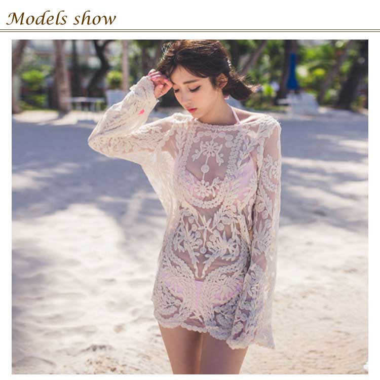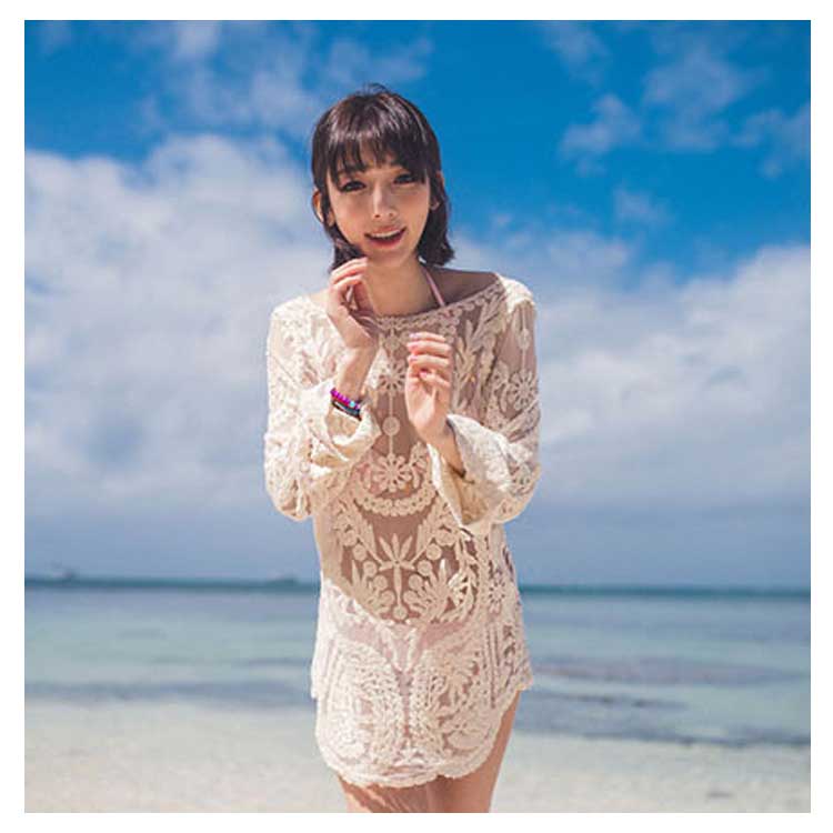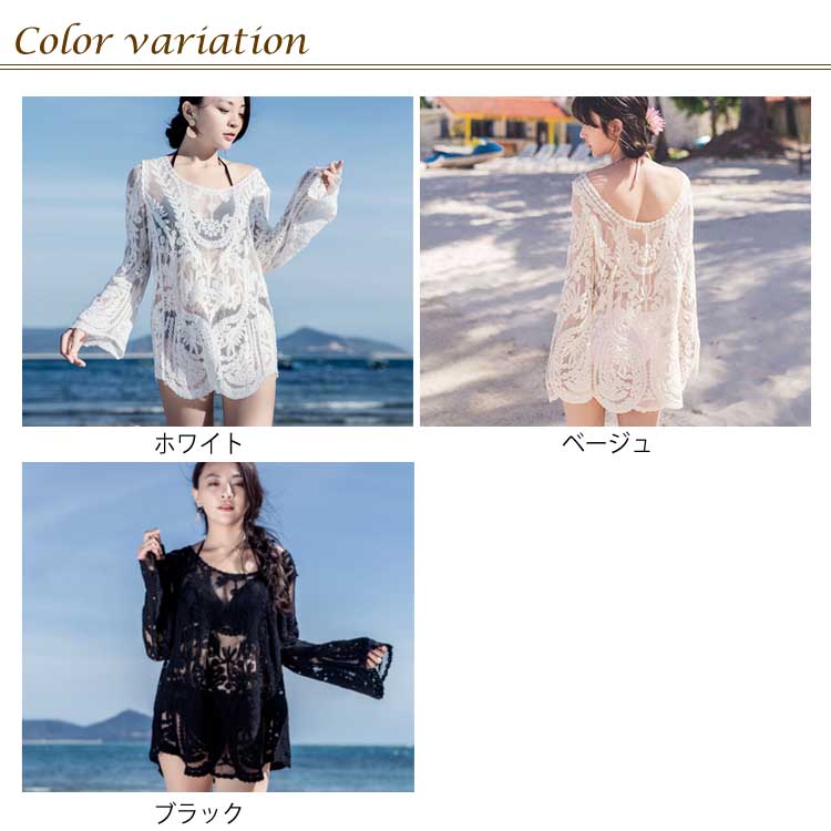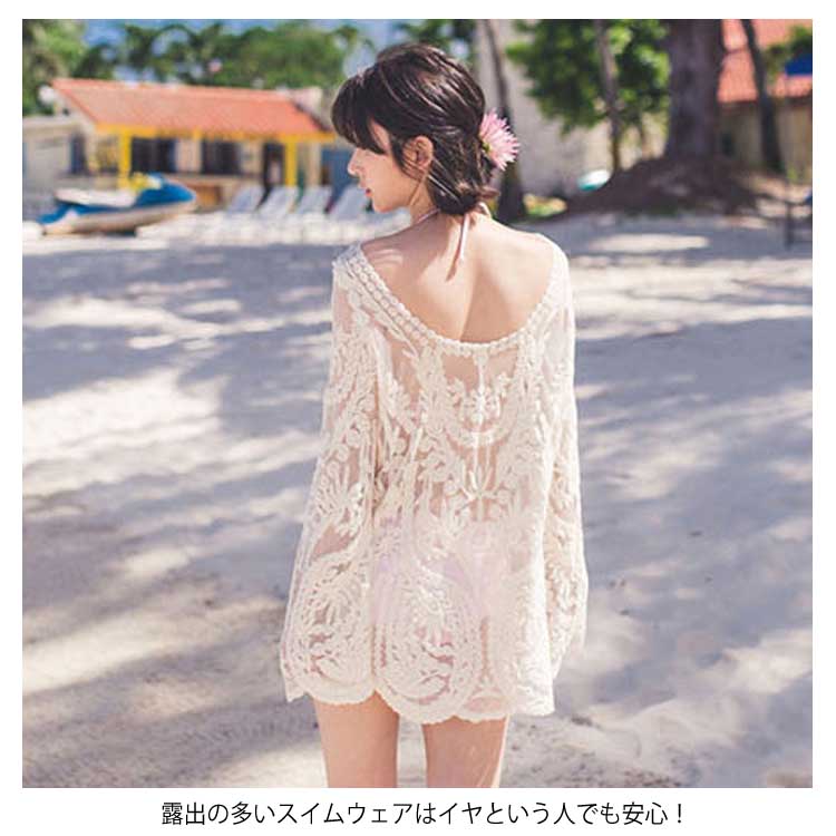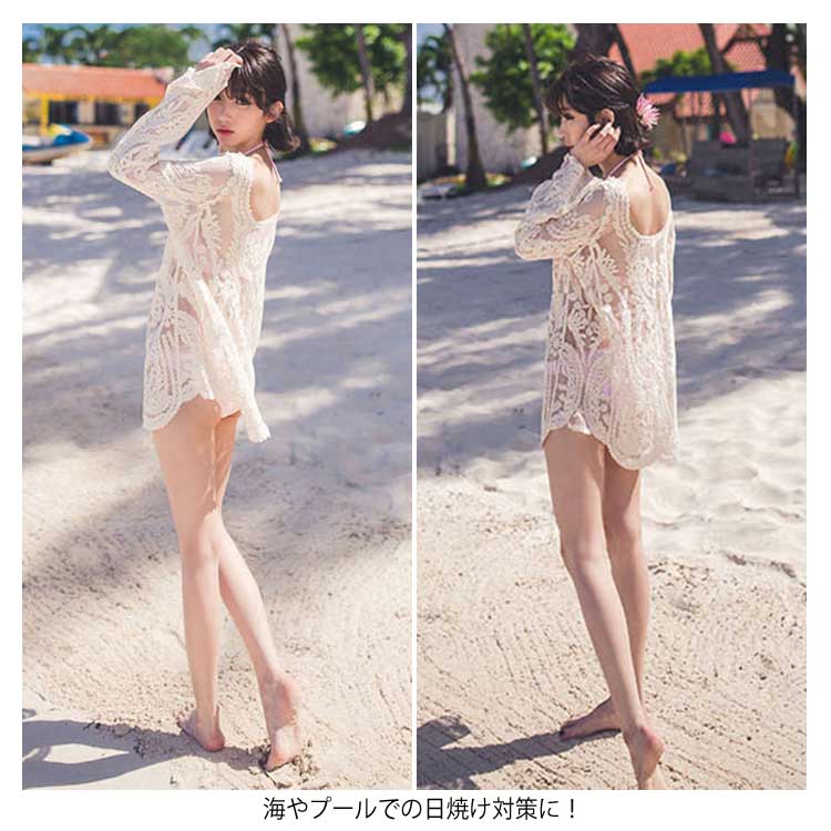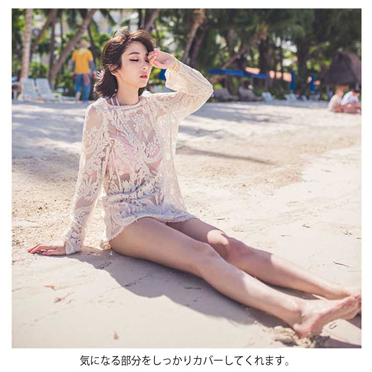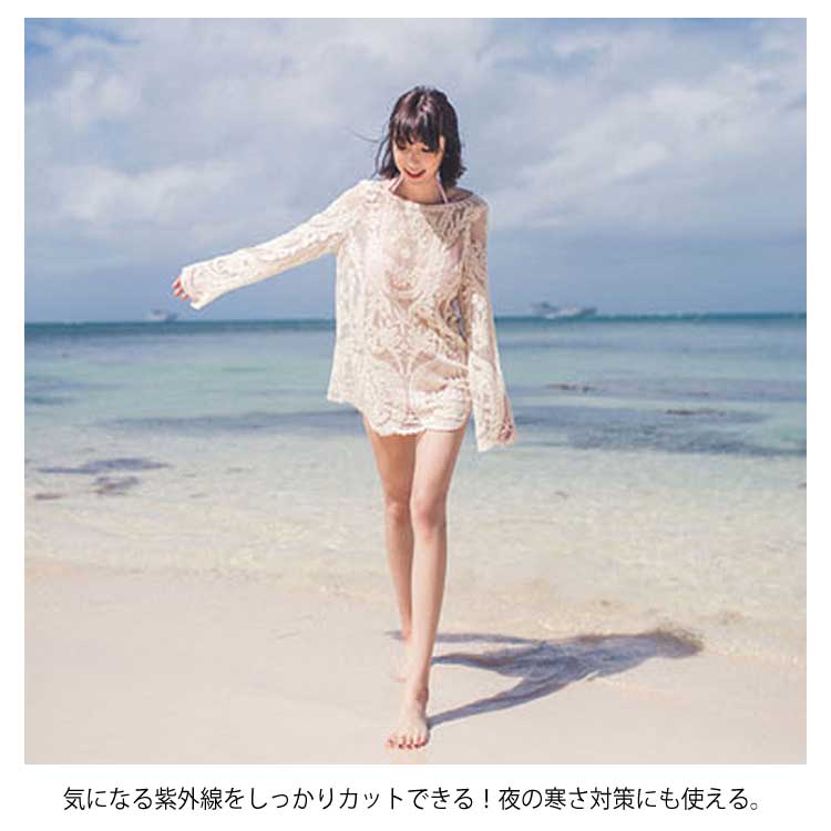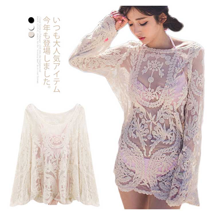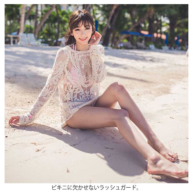 《送料無料》[トップス単品]ラッシュガード UVカット プルオーバー トップス シースルー 長袖 レース 刺繍 透かし 紫外線対策 日焼け防止 体型カバー レディース 女性用 大人 女の子 水着 ビーチウエア