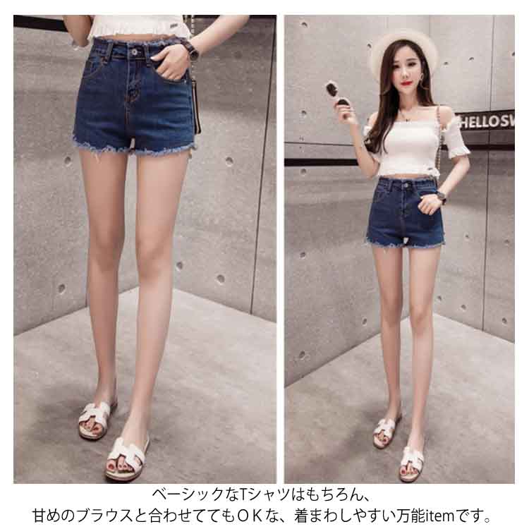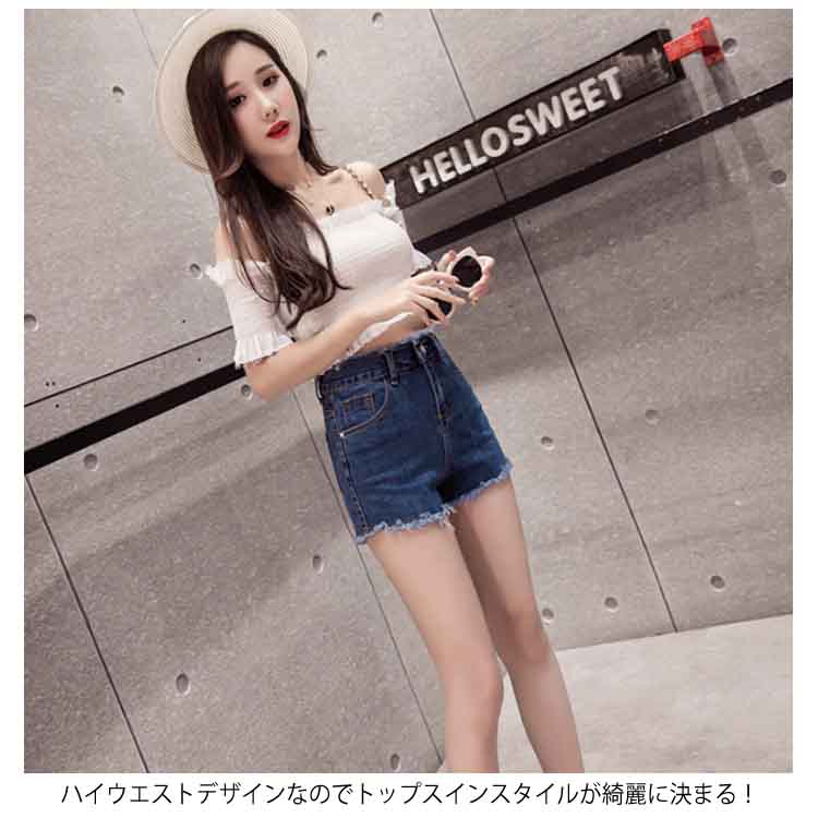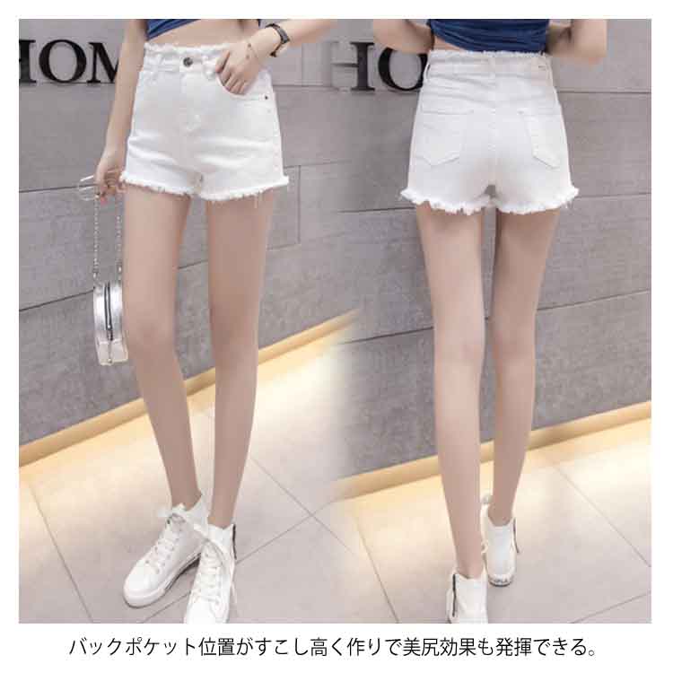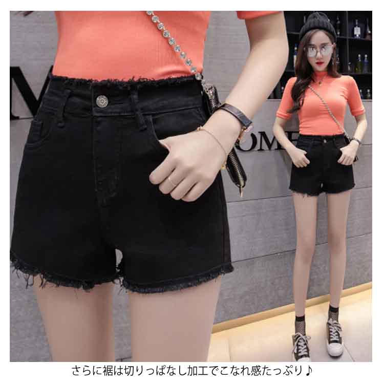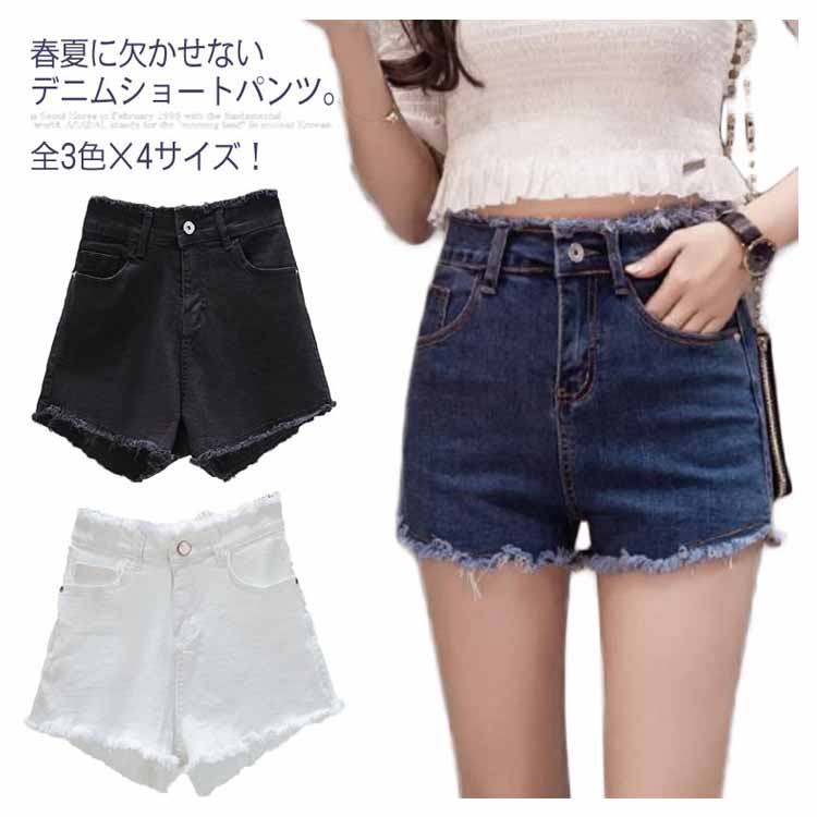 送料無料 全3色×4サイズ!ショートパンツ レディース デニムショートパンツ デニム 短パン 切りっぱなし 美脚 ボトムス ジーンズ ストレッチ ブラック ホワイト ブルー