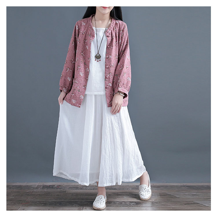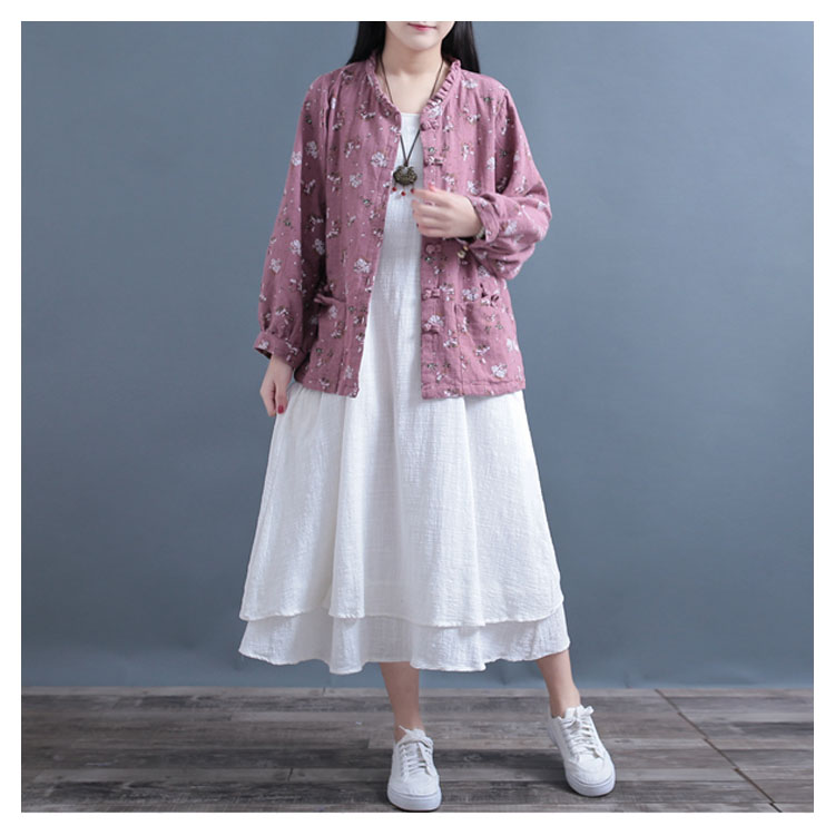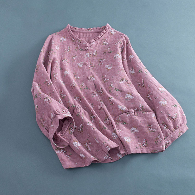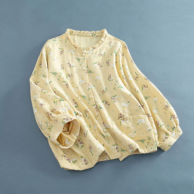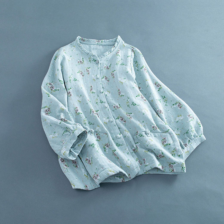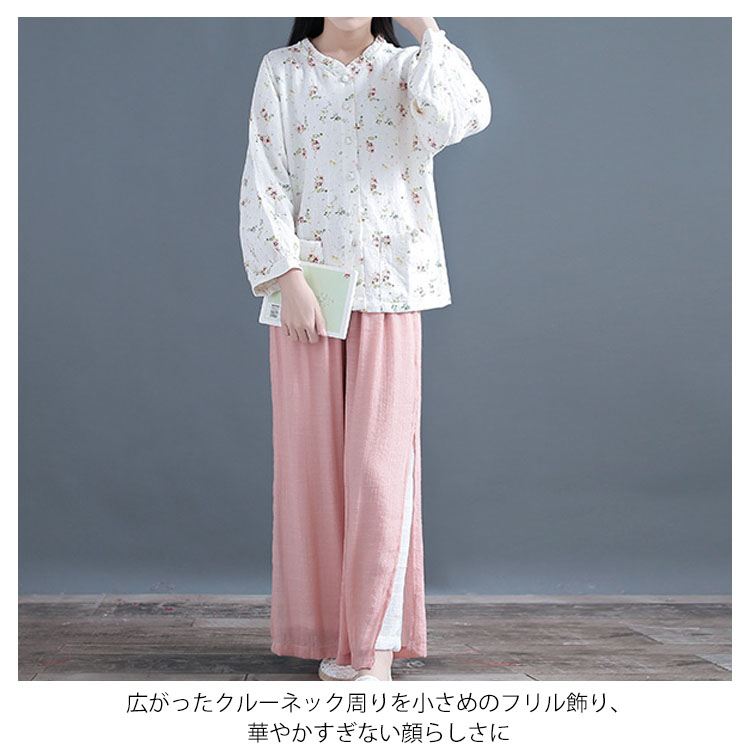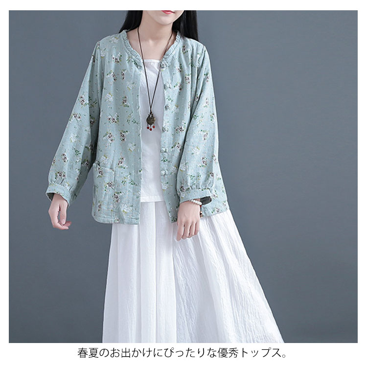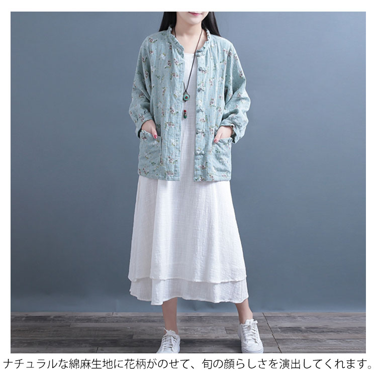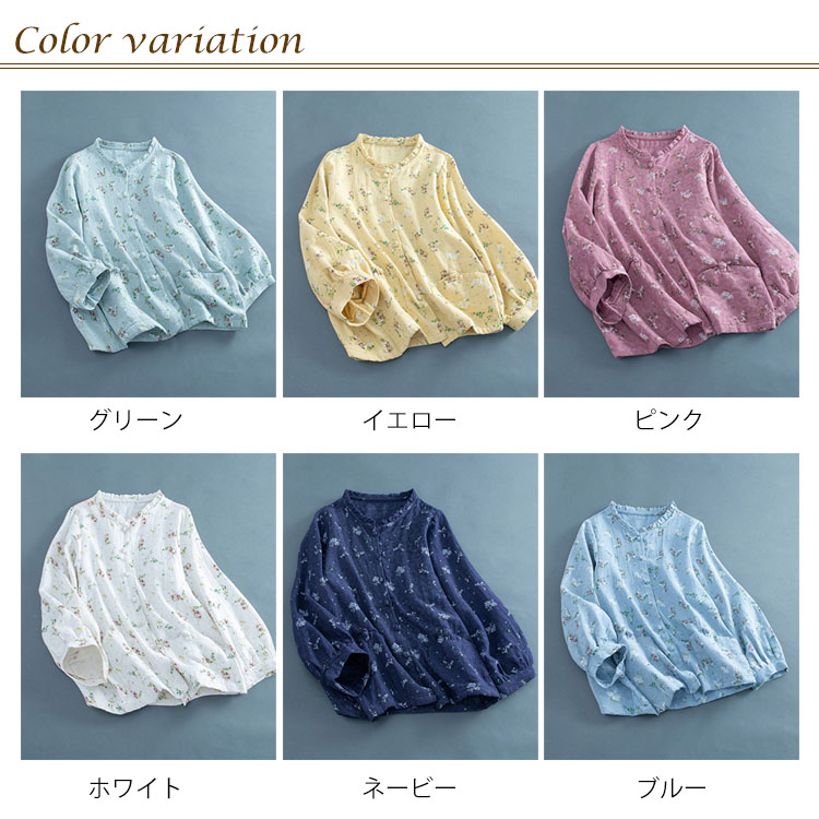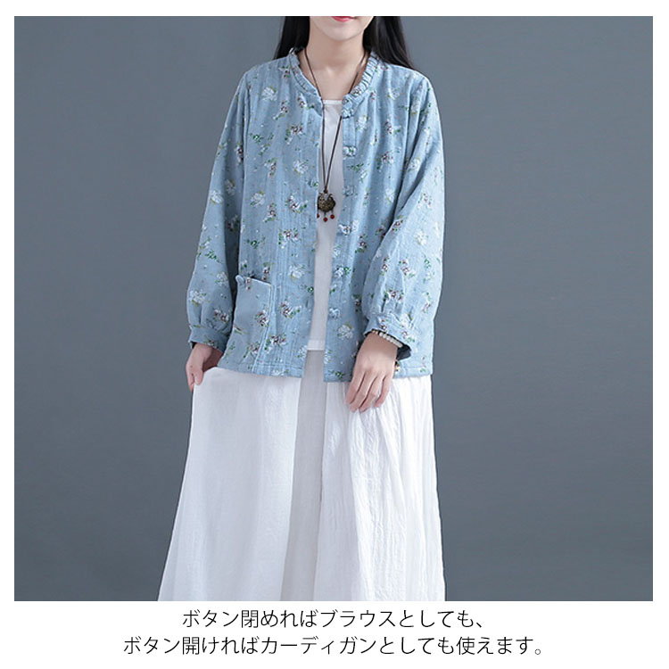 《送料無料》全6色選べる!森ガール服 花柄トップス 綿麻 カーディガン シャツ ブラウス トップス フリル襟 花柄ブラウス 春服 ナチュラル 可愛い
