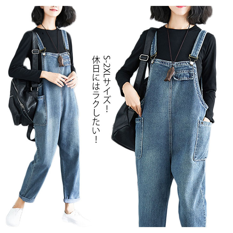 《送料無料》S-2XLサイズ!大きサイズ サロペット パンツ レディース デニム サロペットパンツ オールインワン デニム ボトムス ゆったり 可愛い 春 夏 秋