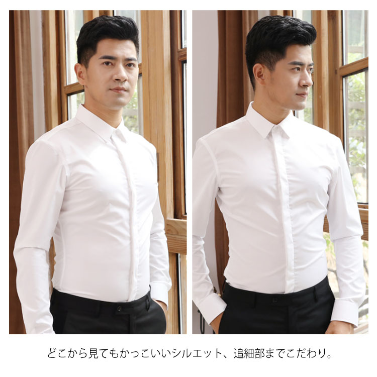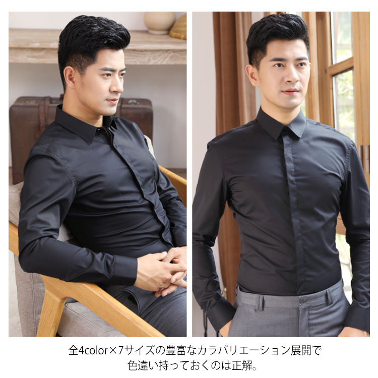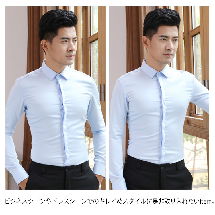 | 年中使える!さり気なくお洒落感を効かせてくれるワイシャツ。 どこから見てもかっこいいシルエット、追細部までこだわり。 洗濯してもシワになりにくく型崩れしにくい丈夫な綿混素材を使用している。 全4color×7サイズの豊富なカラバリエーション展開で色違い持っておくのは正解。 ビジネスシーンやドレスシーンでのキレイめスタイルに是非取り入れたいitem。 | |