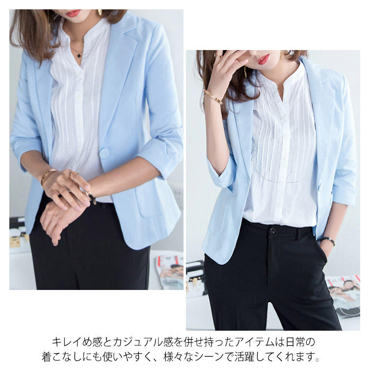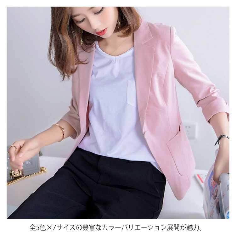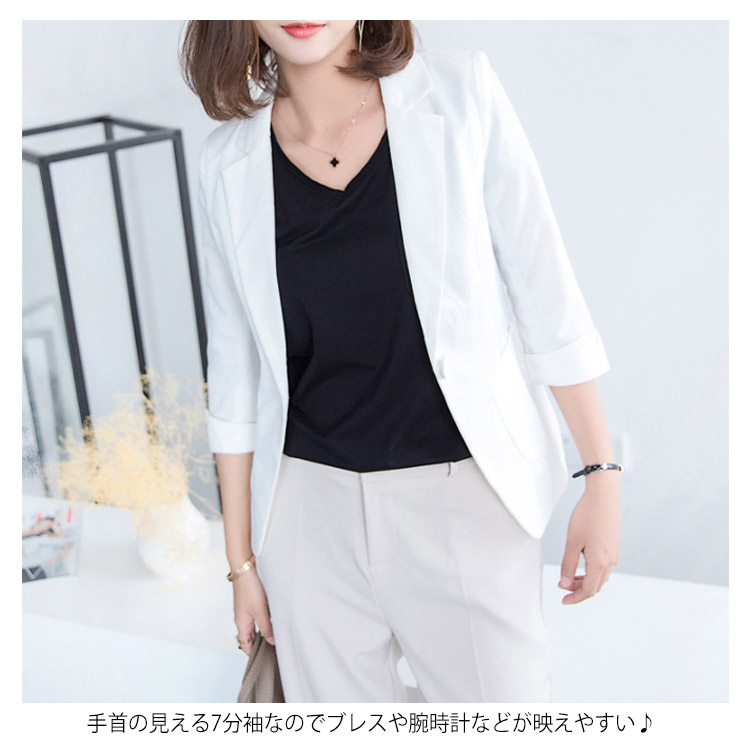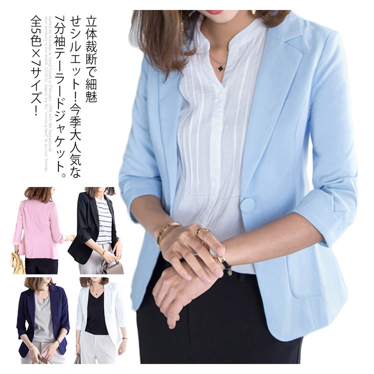 送料無料 全5色×7サイズ!夏ジャケット テーラードジャケット 七分袖 サマージャケット テーラード ジャケット 7分袖ジャケット 薄手 アウター シンプル 無地 カジュアル 上品