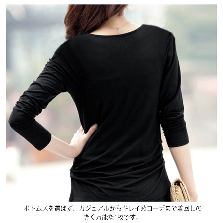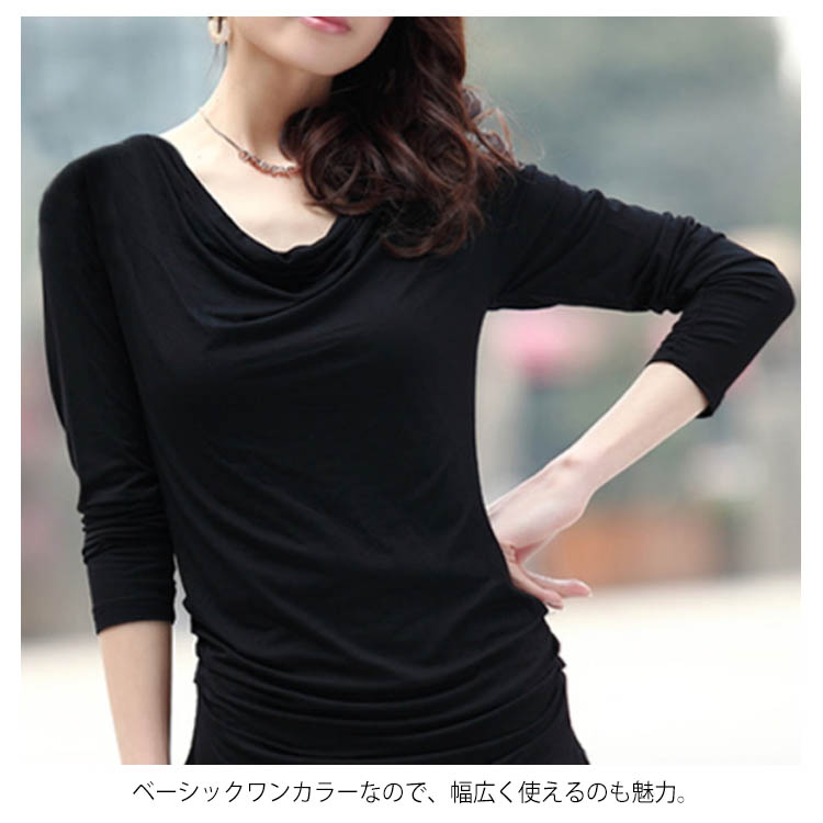 送料無料 S-5XLサイズ!くしゅくしゅネック tシャツ カットソー 長袖 半袖 レディース トップス 無地tシャツ 大きサイズ ストレッチ 伸縮性 柔らかい 春 夏 秋 おしゃれ 可愛い