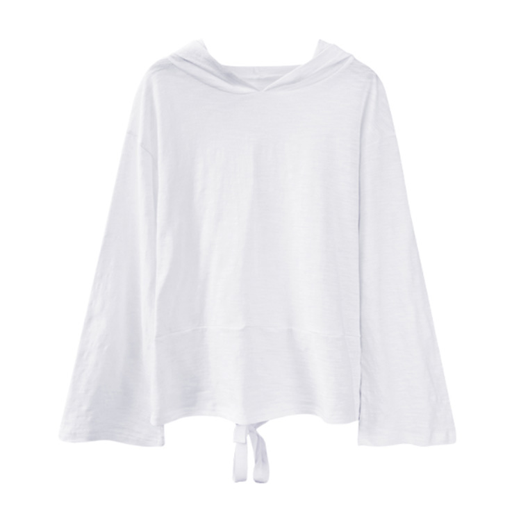 | シンプルながらオシャレ決まりのフレア袖フード付きプルオーバー。 体型をさりげなくカバーするゆるシルエットが嬉しいポイント。 カジュアルにもキレイめにも着こなせるフレア袖プルオーバー登場! 春秋は1枚で、タイトなボトムスと合わせると、バランスよくお洒落ガールに♪ ちょっと肌寒い時はニットベストとコーデすれば、旬のスタイルGET! 生地は伸縮性があり、柔らかい肌触りで着心地快適。 白と黒のベーシックカラーを取り揃え、ボトムスを選ばない万能アイテムは大活躍すること間違いなし。 | |