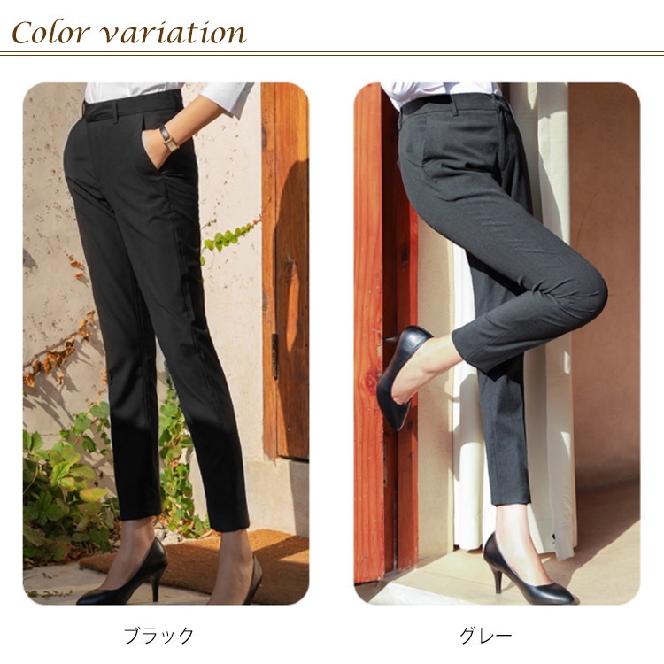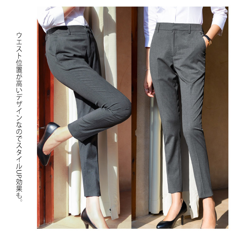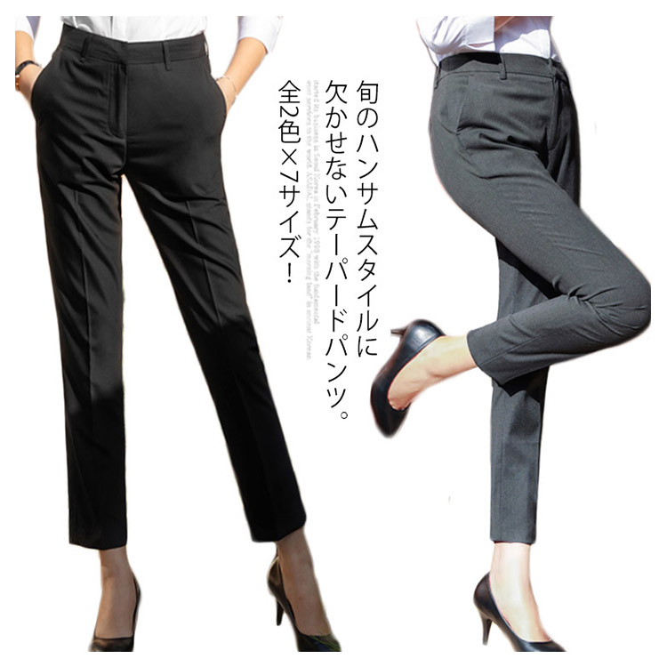 送料無料 全2色×7サイズ!テーパードパンツ 無地 パンツ スラックス ボトム テーパード 9分丈 美脚パンツ スラックスパンツ スーツパンツ OL 通勤 事務服 ブラック 黒 グレー