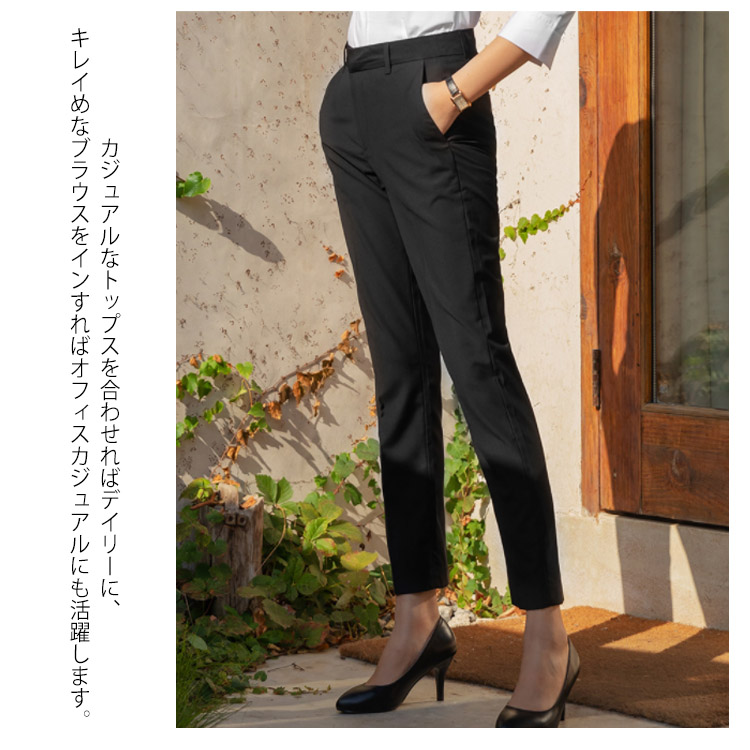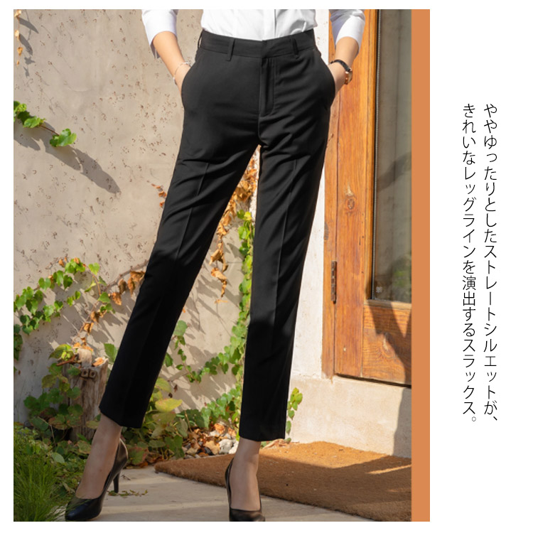 | 全2色×7サイズ!旬のハンサムスタイルに欠かせないテーパードパンツ。 こだわりの上質な生地が品のある大人の女性を演出してくれます。 ウエスト位置が高いデザインなのでスタイルUP効果も。 ややゆったりとしたストレートシルエットが、きれいなレッグラインを演出するスラックス。 カジュアルなトップスを合わせればデイリーに、キレイめなブラウスをインすればオフィスカジュアルにも活躍します。 | |