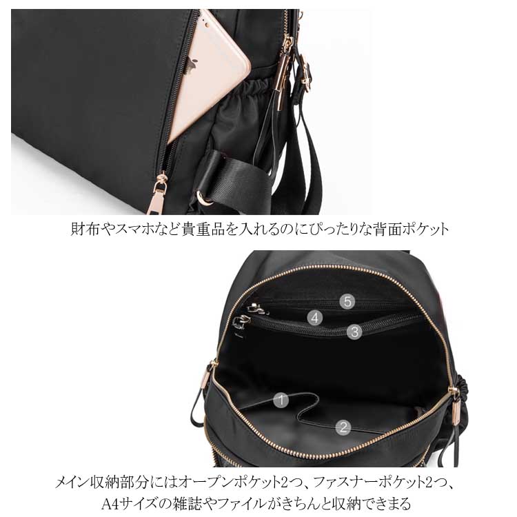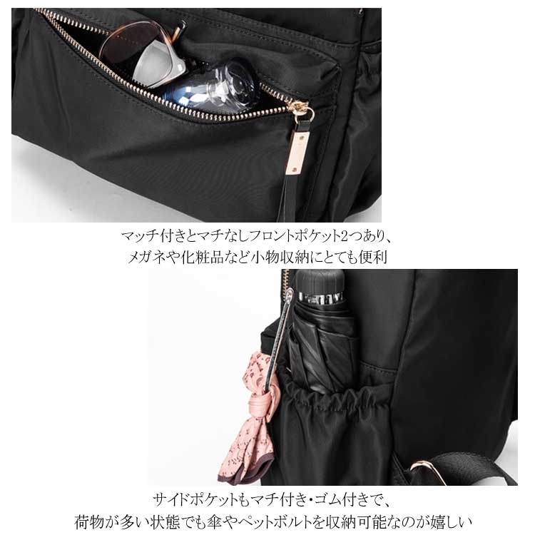 リュックサック バックパック レディース 軽量 ナイロンリュック 撥水加工 多収納 大容量 マザーズリュック マザーズバッグ シンプル 黒 カバン 鞄 通勤 通学 旅行 出張用 短期旅行