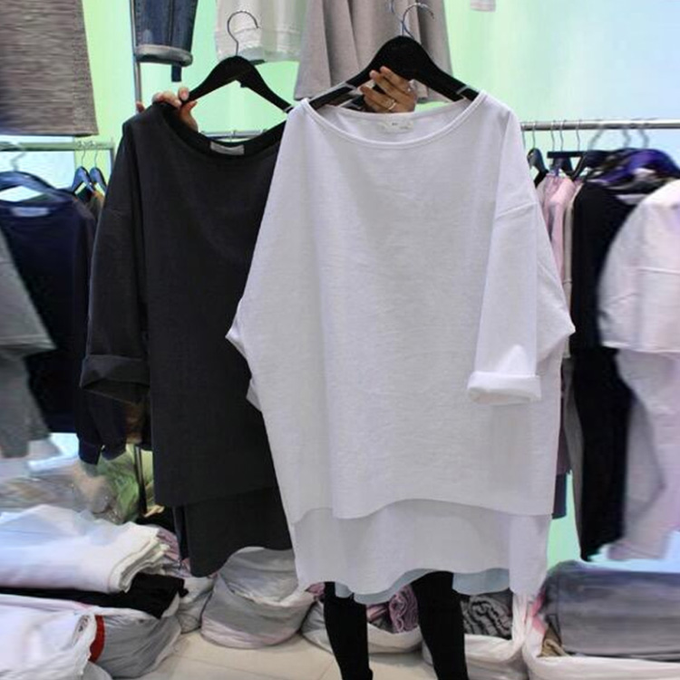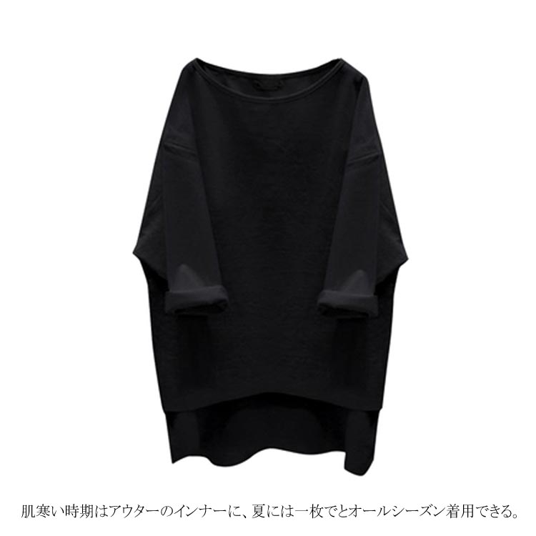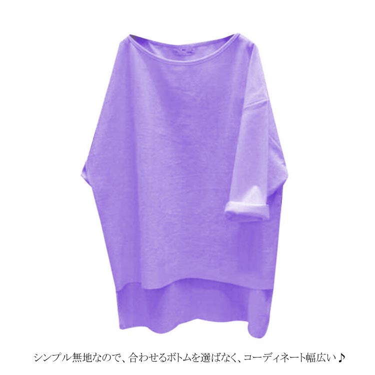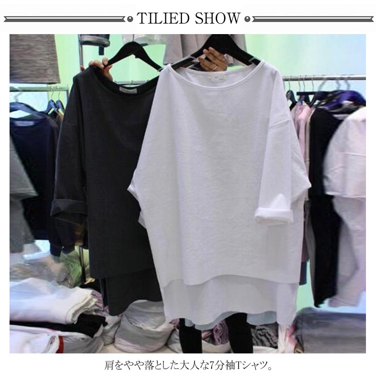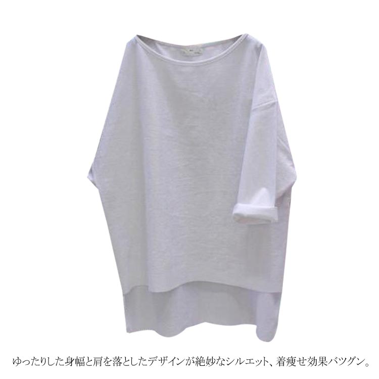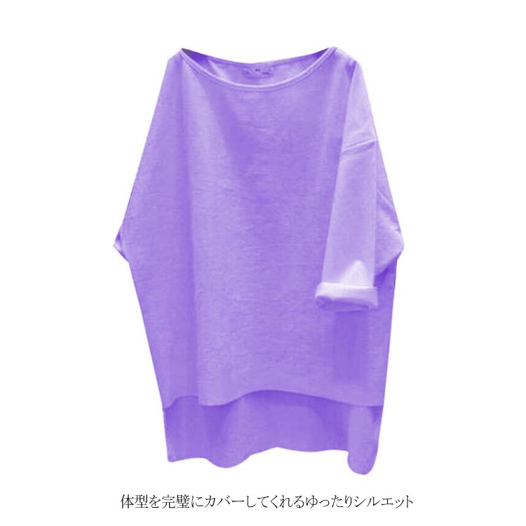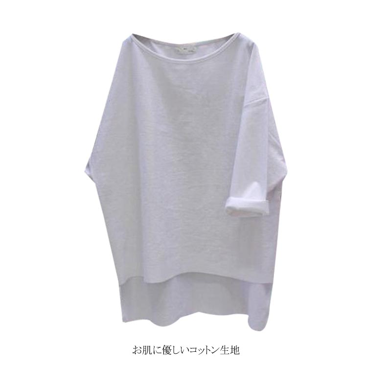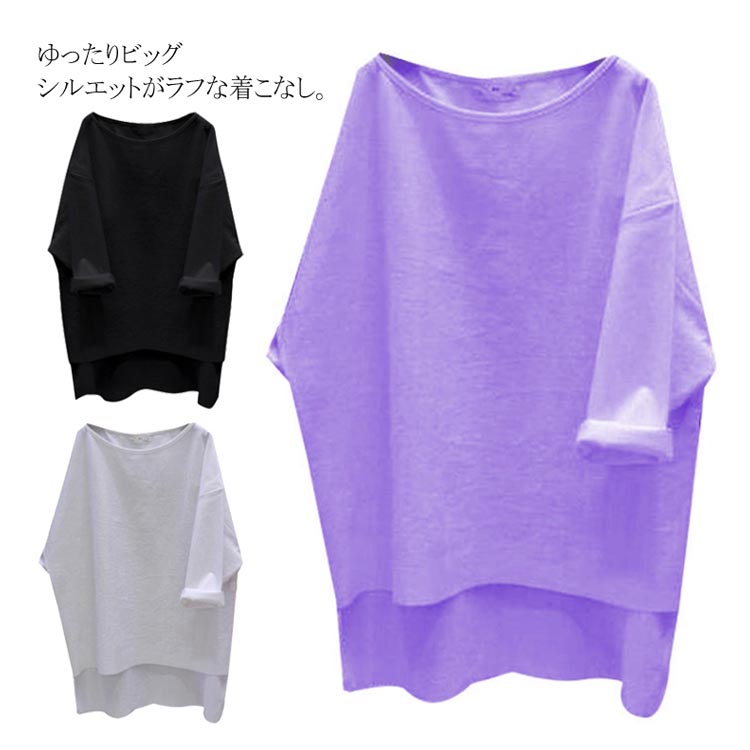 送料無料 ビッグTシャツ 7分袖 Tシャツ ゆるT 大きいサイズ レディース 体型カバー 着痩せ ゆったり ビッグサイズ シンプル 無地 トップス カットソー クールネック 後ろ長め カジュアル お洒落 秋 夏