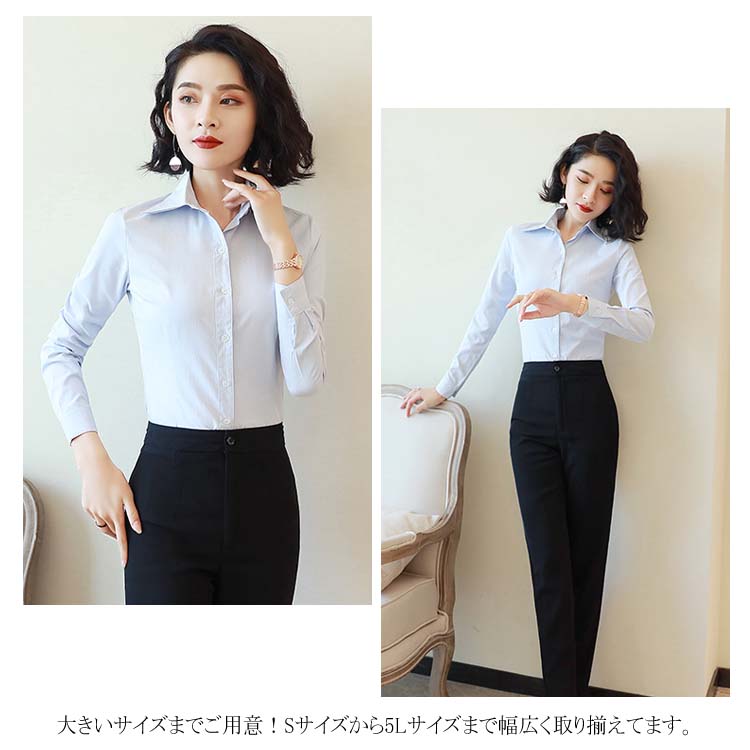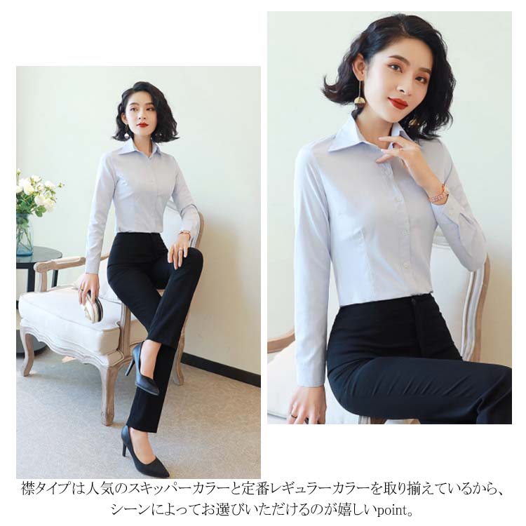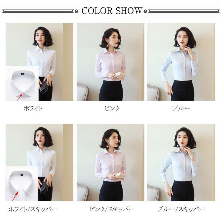 | 働く女性に欠かせない長袖ワイシャツ。 スリムなシルエットが女性の魅力をアピール。スカートにもパンツにもマッチ! シンプルベーシックデザインなのでオールシーズン活躍する定番オフィスシャツ! 襟タイプは人気のスキッパーカラーと定番レギュラーカラーを取り揃えているから、シーンによってお選びいただけるのが嬉しいpoint。 大きいサイズまでご用意!Sサイズから5Lサイズまで幅広く取り揃えてます。 | |