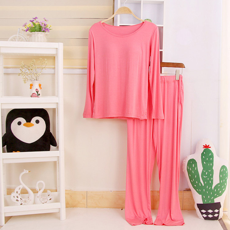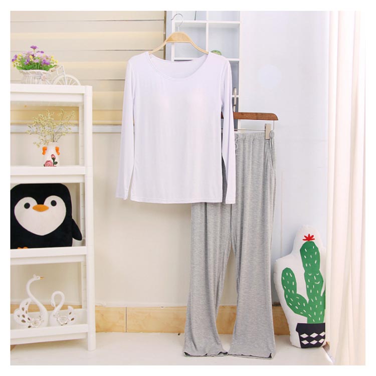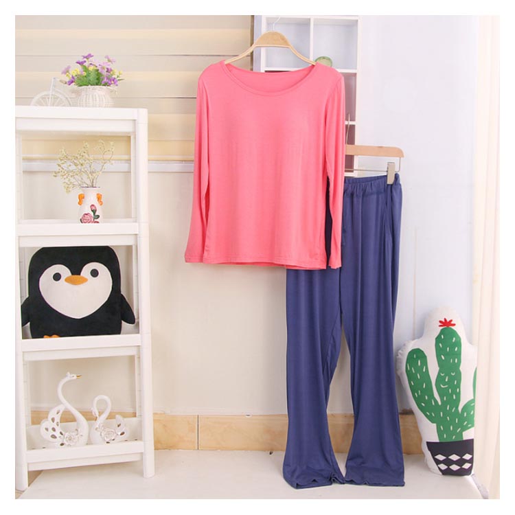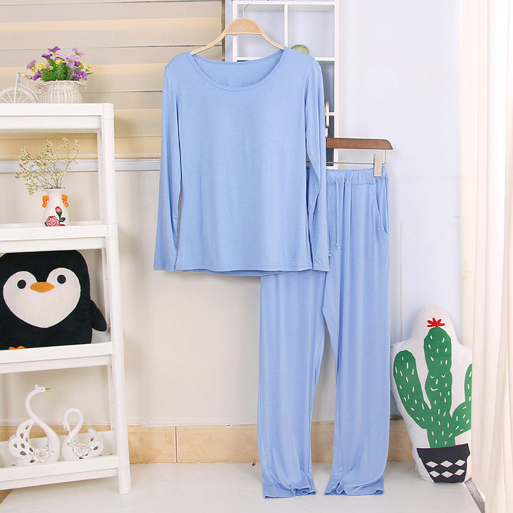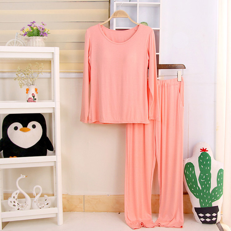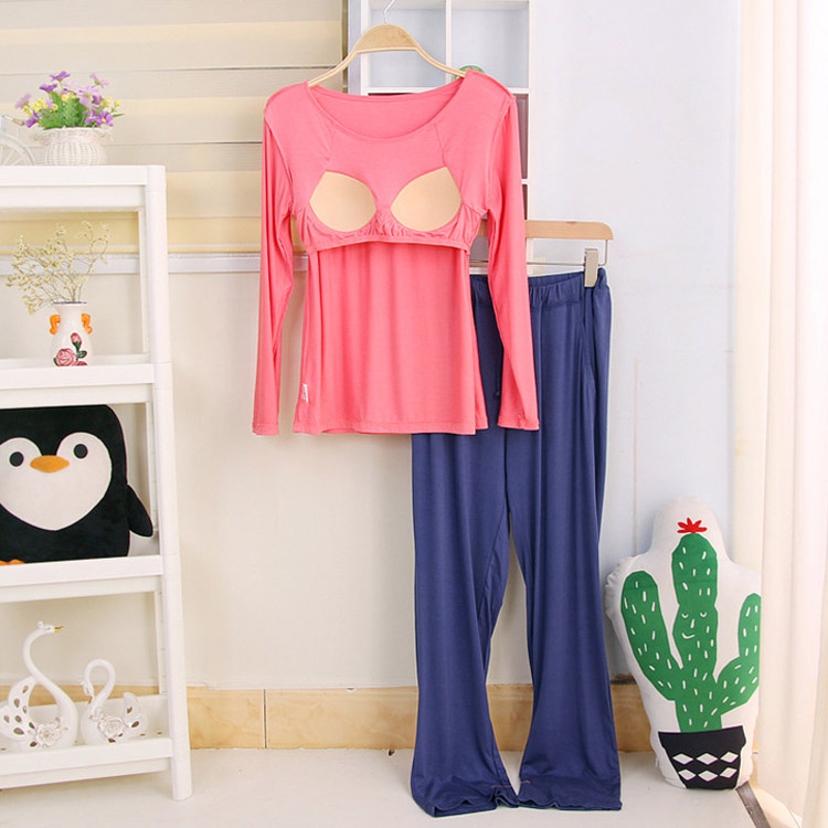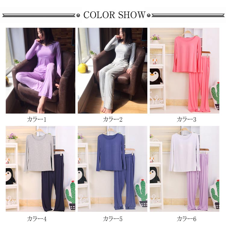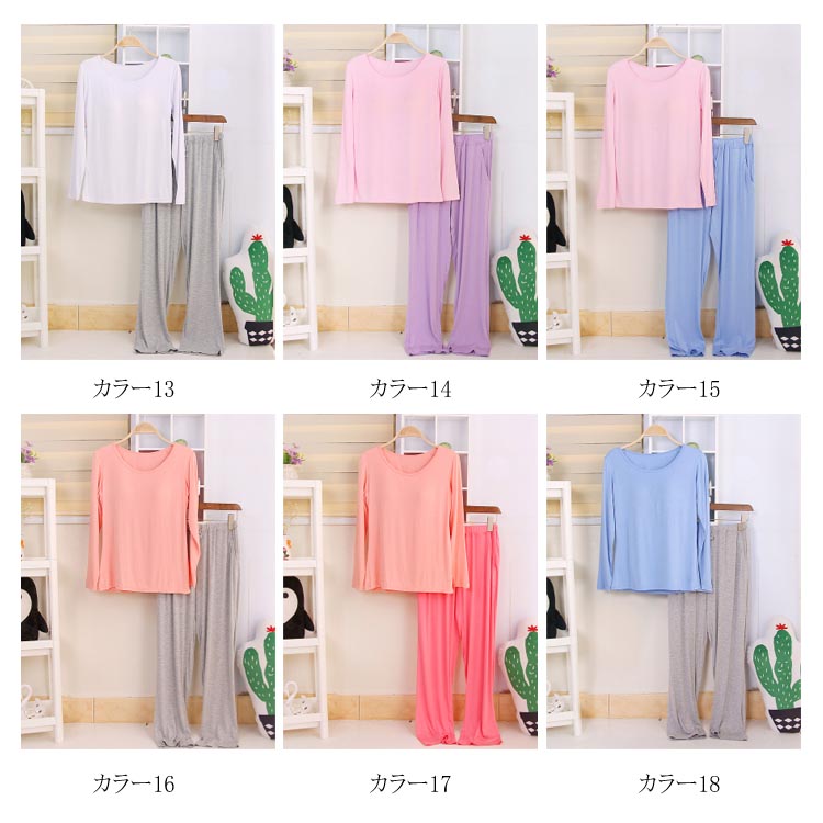 ルームウェア カップ付き パジャマ ブラ付き レディース 長袖 ナイトウェア モダール 上下セット 長パンツ ロングパンツ 長袖 プルオーバー 2点セット ゆったり リラックス ストレスフリー 秋 冬