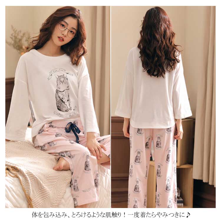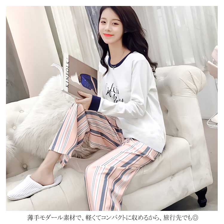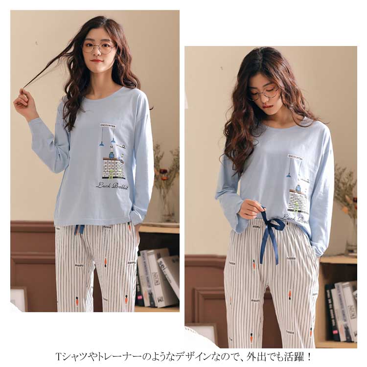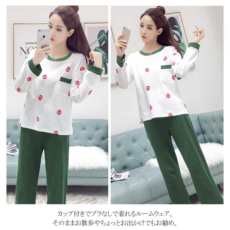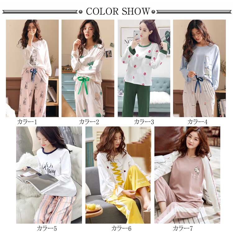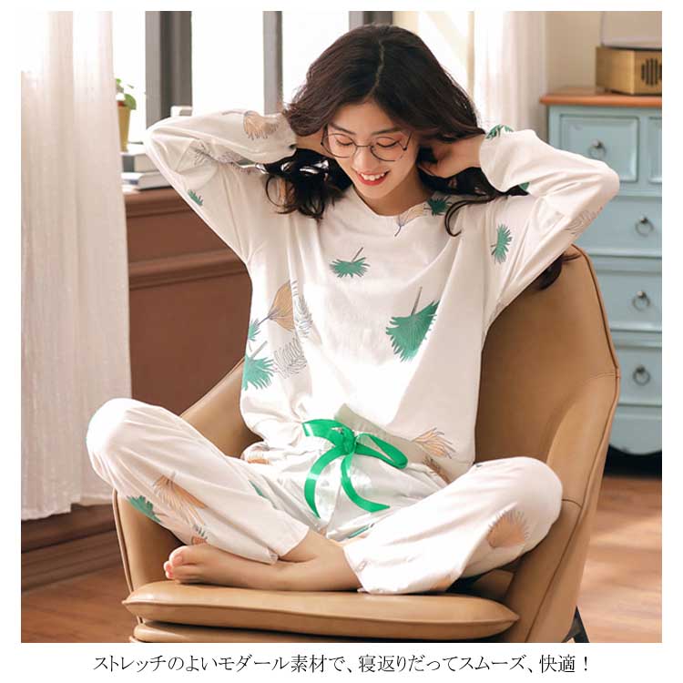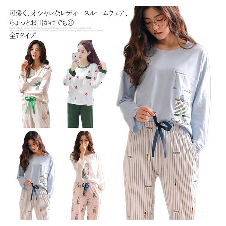 全7タイプ! 可愛いルームウェア パジャマ 長袖 プルオーバー モダール レディース 上下セット カップ付き パッド取り外し可能 キャラクター ヨガウェア スポーティー 入院 リボン ポケット付き キュート ロングパンツ 夏 春 秋