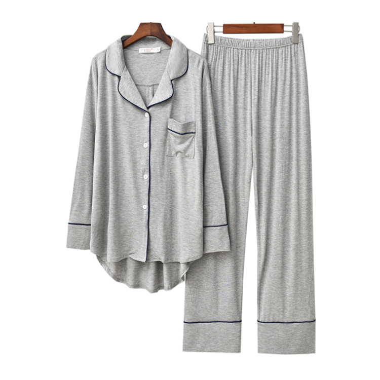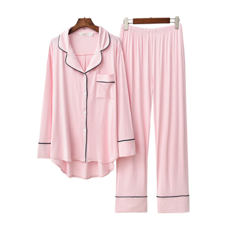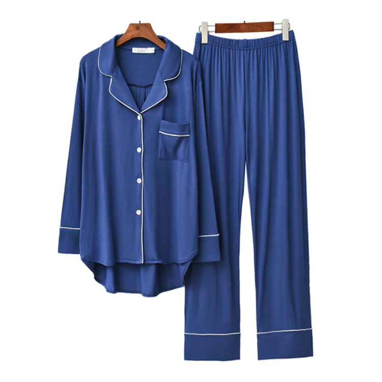 モダールパジャマ 寝間着 レディース ナイトウェア 上下セット パジャマ モダール 長袖 ポケット付き 前開き シャツパジャマ 入院 マタニティ 産後 クラシカル デザイン 大きいサイズ ルームウェア 部屋着 夏 秋冬