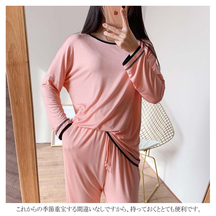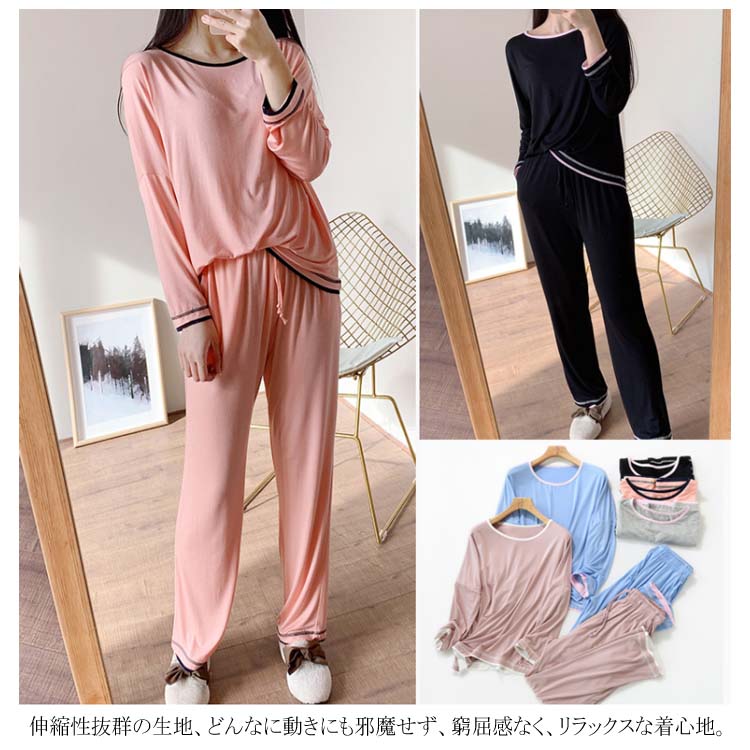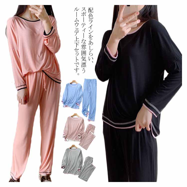 スポーティーな雰囲気溢れるルームウェア 部屋着上下セット 長袖 ルームウェア ナイトウェア ヨガウェア ゆったり モダール 柔らかい フィットネスウェア マタニティ 運動着 お散歩 お出かけ ポケット付き 配色ライン お洒落 ファッション ドロップスリーブ 春 秋 冬
