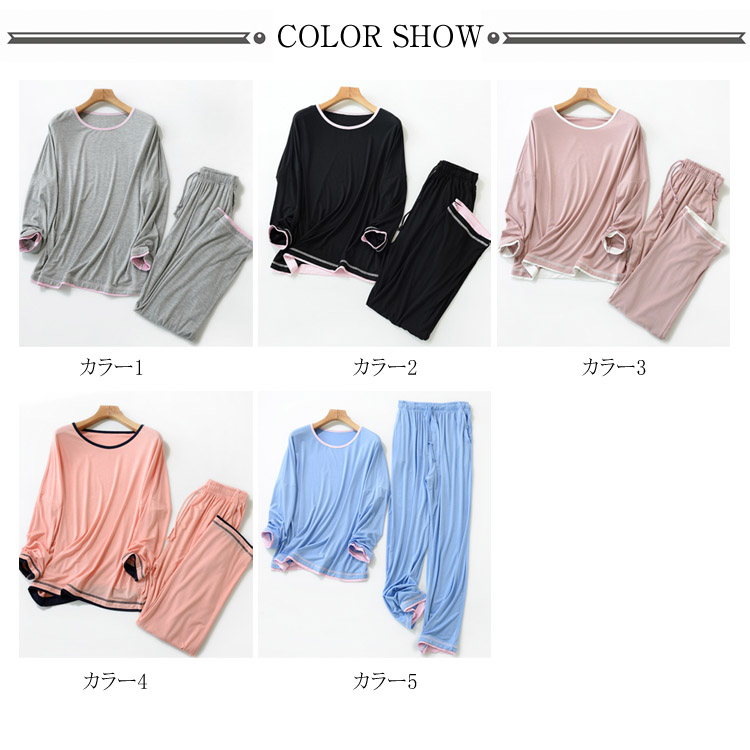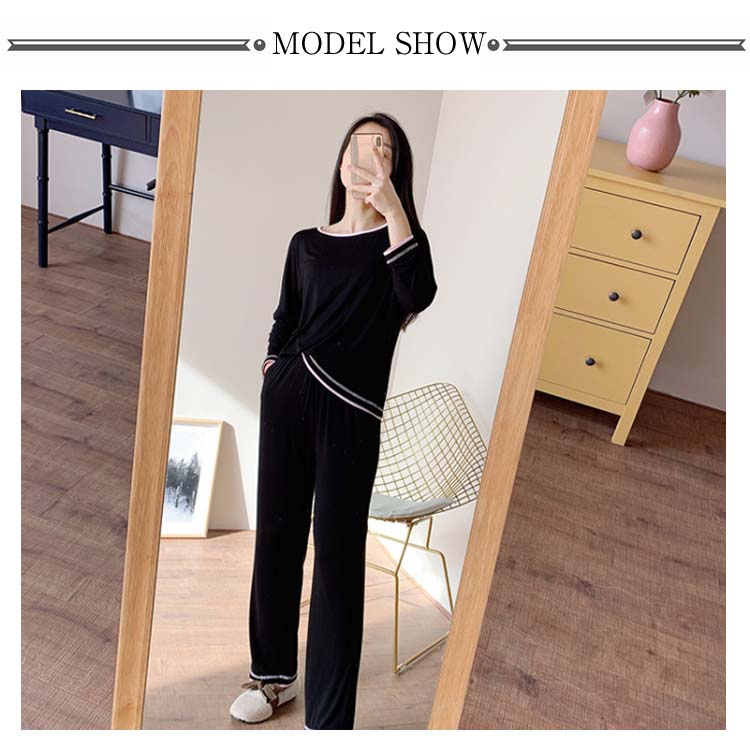 | 配色ラインをあしらい、スポーティーな雰囲気漂うルームウェア上下セットです。 家でのリラックスタイムだけでなく、ヨガ、フィットネス、お散歩、ランニング、お出かけなど~様々なシーンで使えるオシャレなデザインに夢中! 見た目だけでなく、着心地も妥協しない。シルクタッチの上品なモダールを採用、一度着るとやみつきに。 伸縮性抜群の生地、どんなに動きにも邪魔せず、窮屈感なく、リラックスな着心地。 これからの季節重宝する間違いなしですから、持っておくととても便利です。 | |
