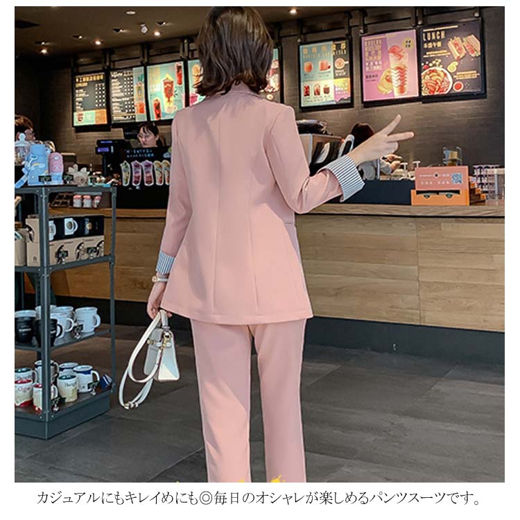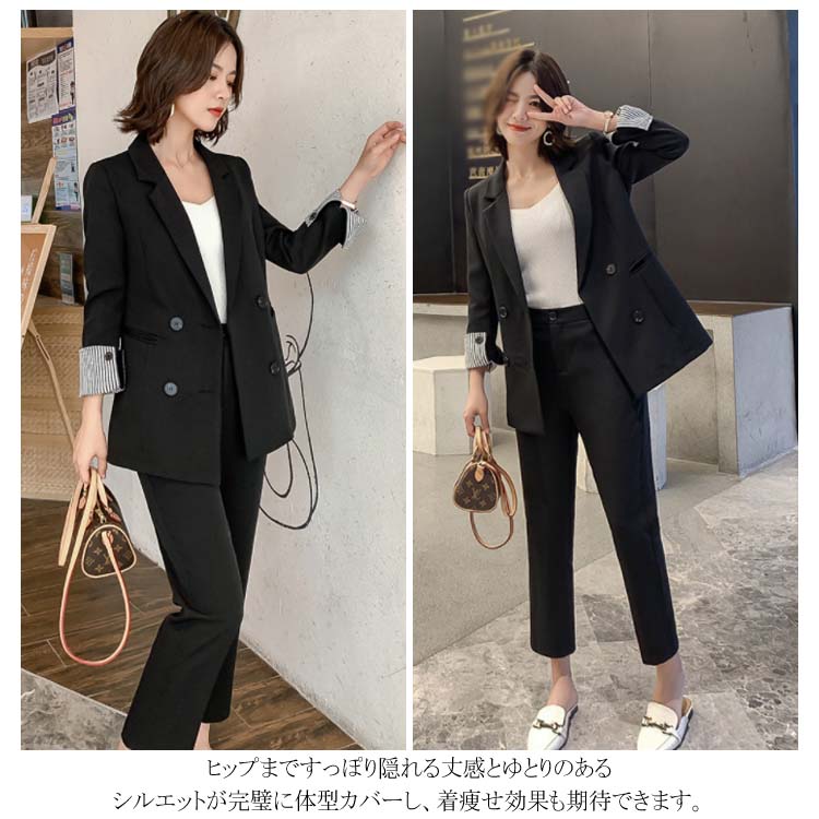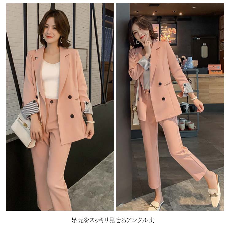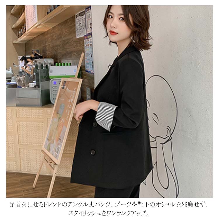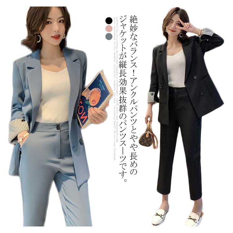スーツ パンツスーツ セットアップ 2点セット オシャレ レディース ビジネス スーツ オフィス お仕事 OL 通勤 テーラードジャケット 長袖 ジャケット 8分丈パンツ アンクル パンツ 入学式 卒業式 卒園式