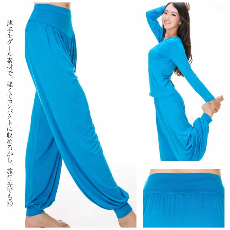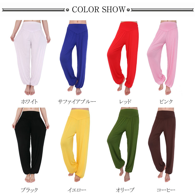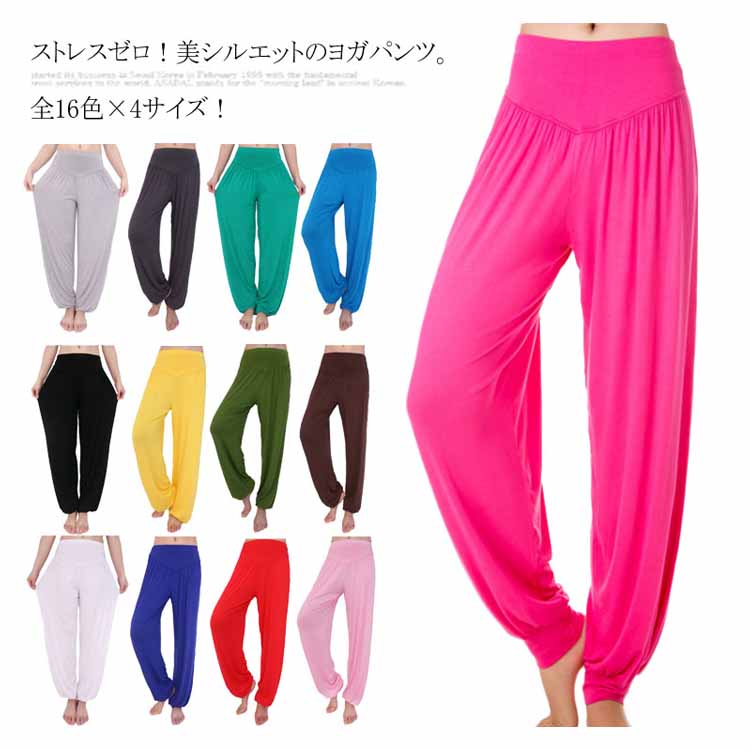 送料無料 全16色×4サイズ! ヨガパンツ フィットネスウェア ヨガパンツ ダンスウェア レディース ゆったり とろみ モダール ヨガ パンツ サルエル バルーンシルエット バルーンパンツ ダンス ストレッチ 伸縮性 ウォーキング フィットネス スポーツ 部屋着 リラックスパンツ 美脚