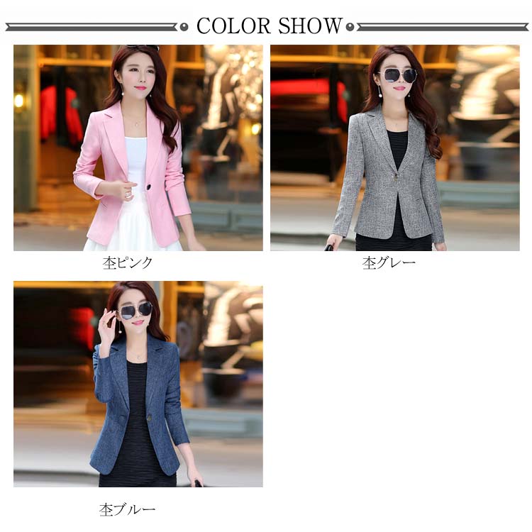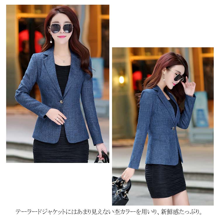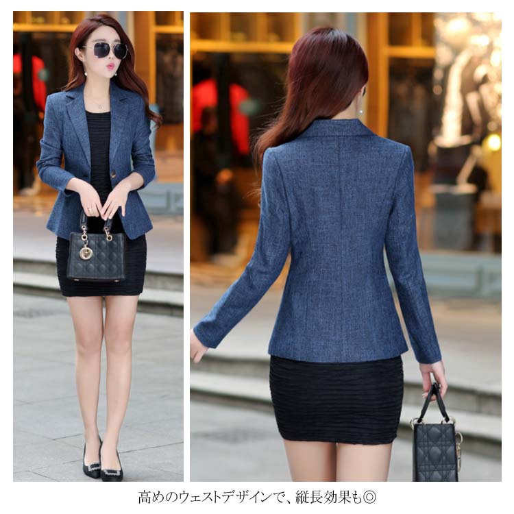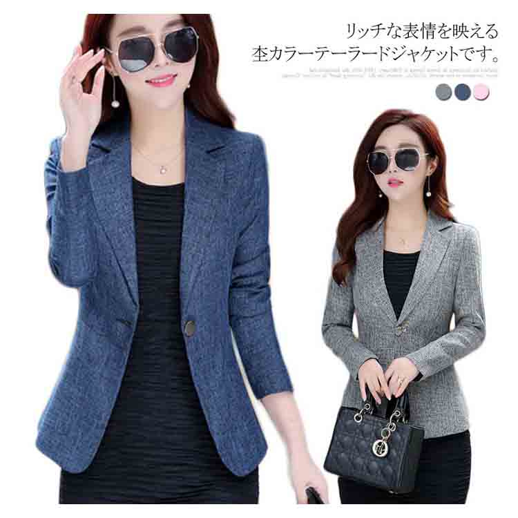 全7サイズ! 2019新作 テーラードジャケット スーツジャケット アウター レディース スリム 着痩せ ワンボタン くびれ 大きいサイズ 裏地付き 杢カラー カジュアル 秋 冬