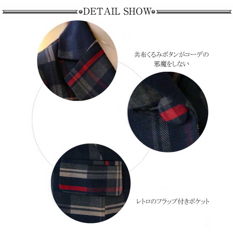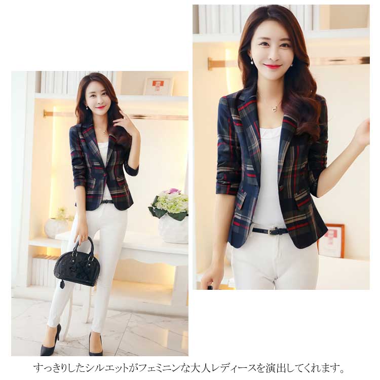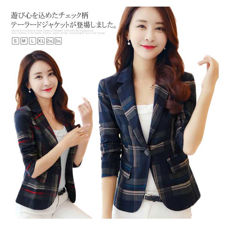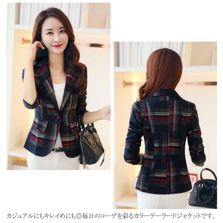 | 遊び心を込めたチェック柄テーラードジャケットが登場しました。 カジュアルにもキレイめにも◎毎日のコーデを彩るカラーテーラードジャケットです。 すっきりしたシルエットがフェミニンな大人レディースを演出してくれます。 普段着はもちろん、結婚式、入学式、卒園式、発表会、お呼ばれ、二次会などフォーマルシーンも大活躍! | |