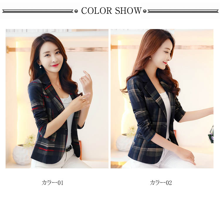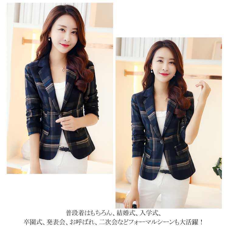 チェック柄 テーラードジャケット スーツ ジャケット レディース ワンボタン ポケット付き カジュアルジャケット お洒落 スリム 裏地付き 着痩せ 通勤 オフィス デート お出かけ OL