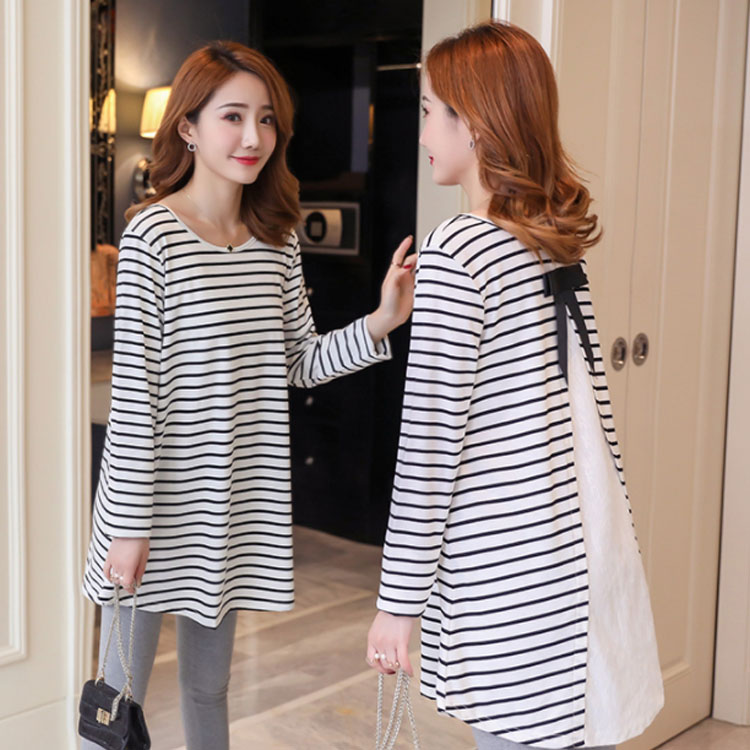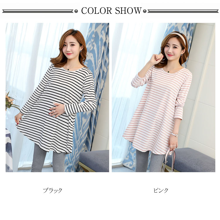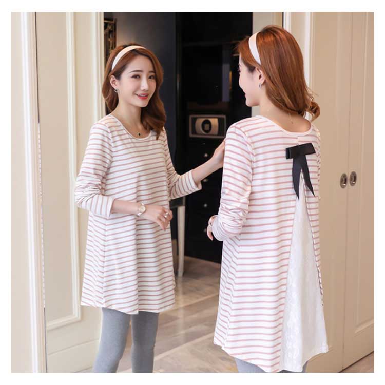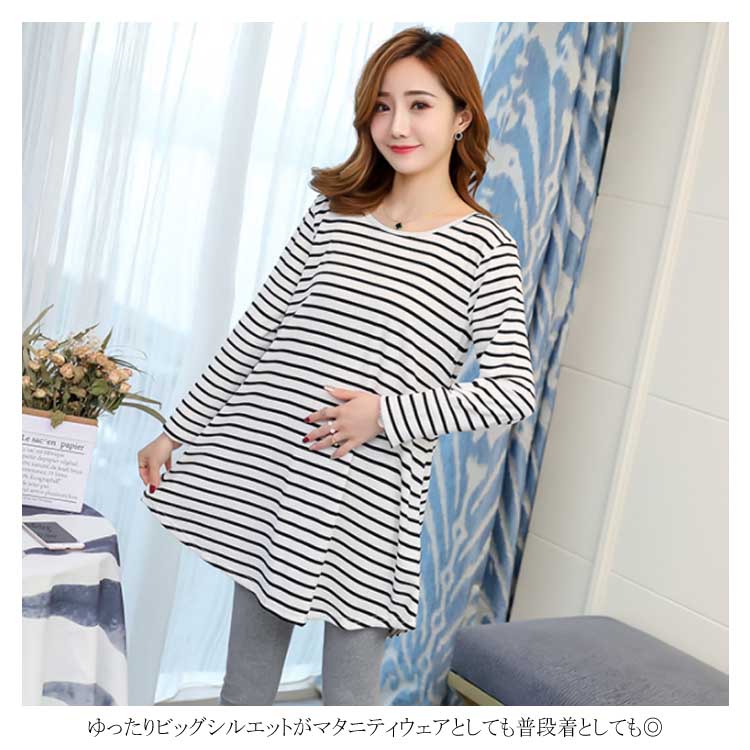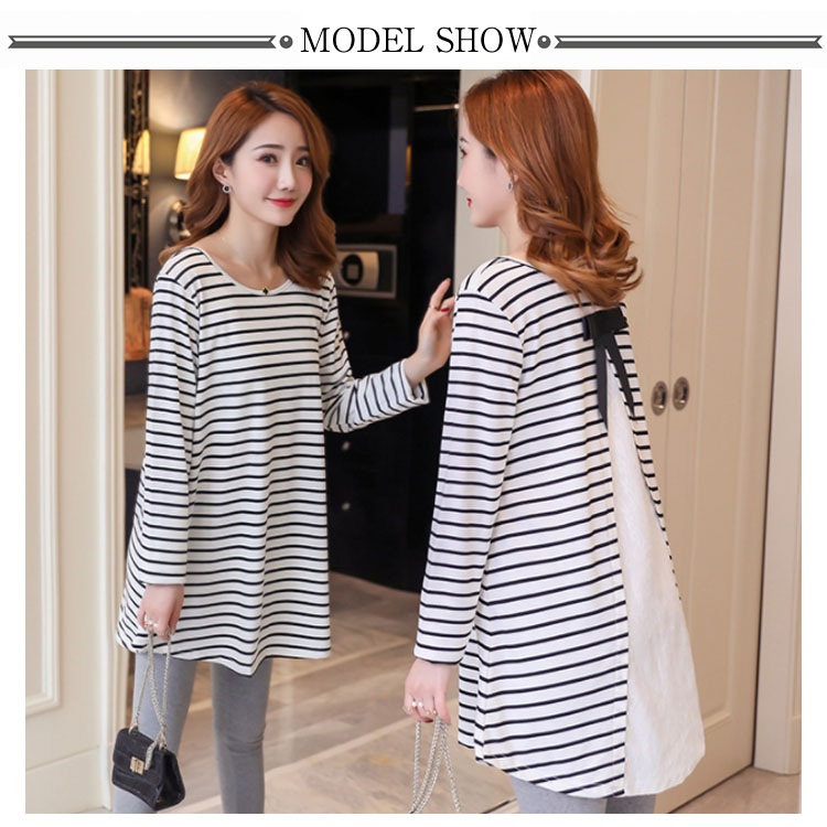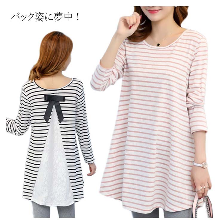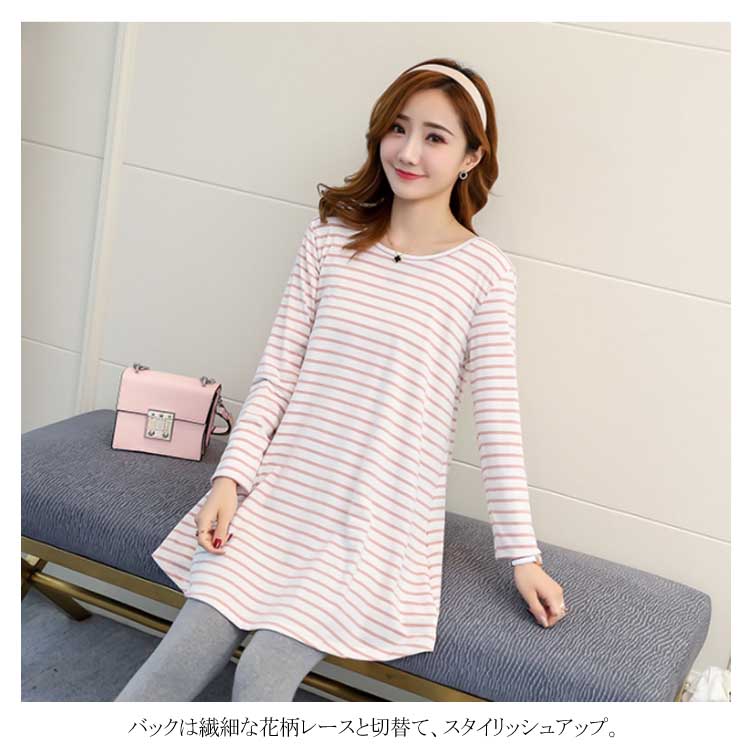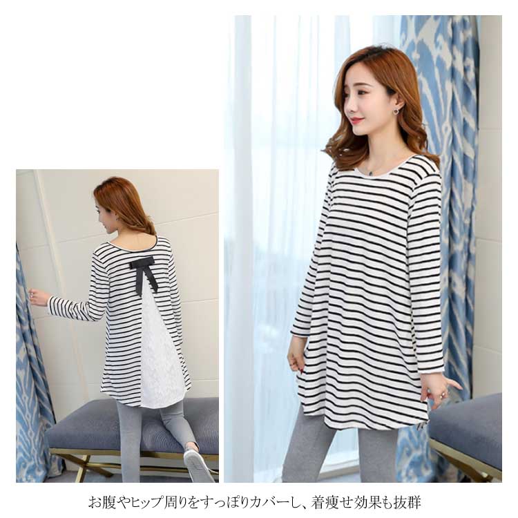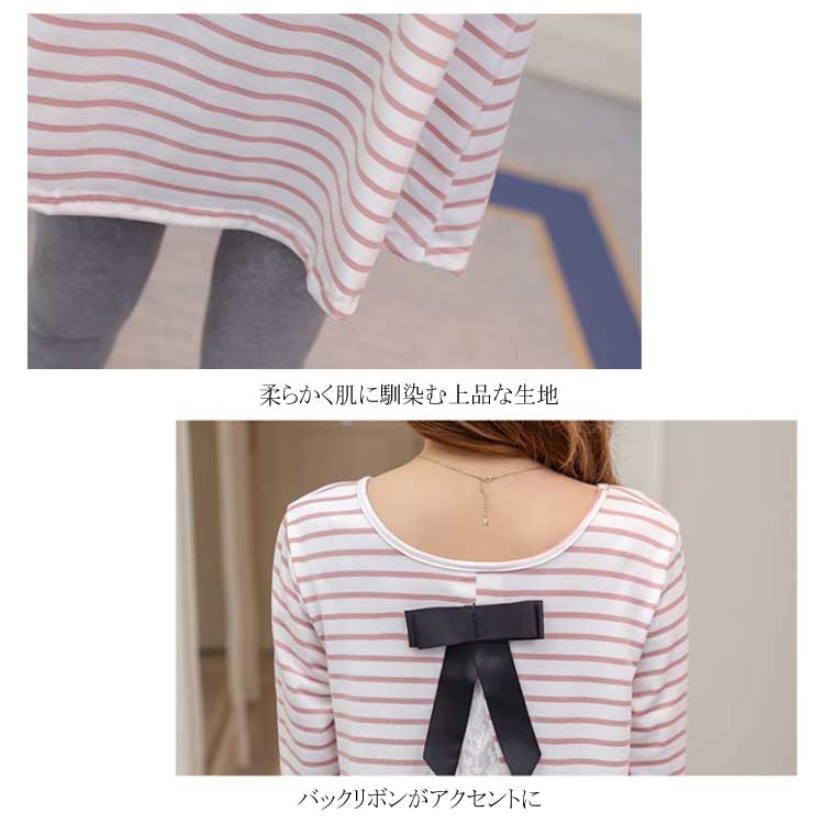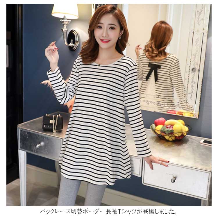 バックレース切替がお洒落! ボーダーTシャツ 長袖カットソー レディース トップス マタニティウェア マタニティトップス お洒落 キレイめ 長袖 春 秋 体型カバー 着痩せ お出かけ 通勤