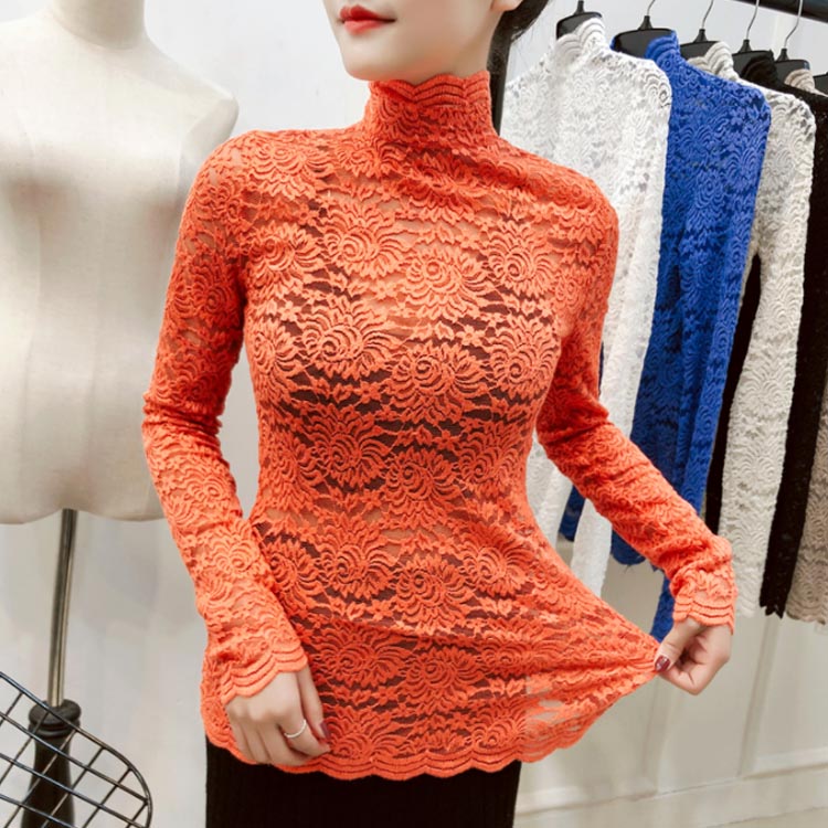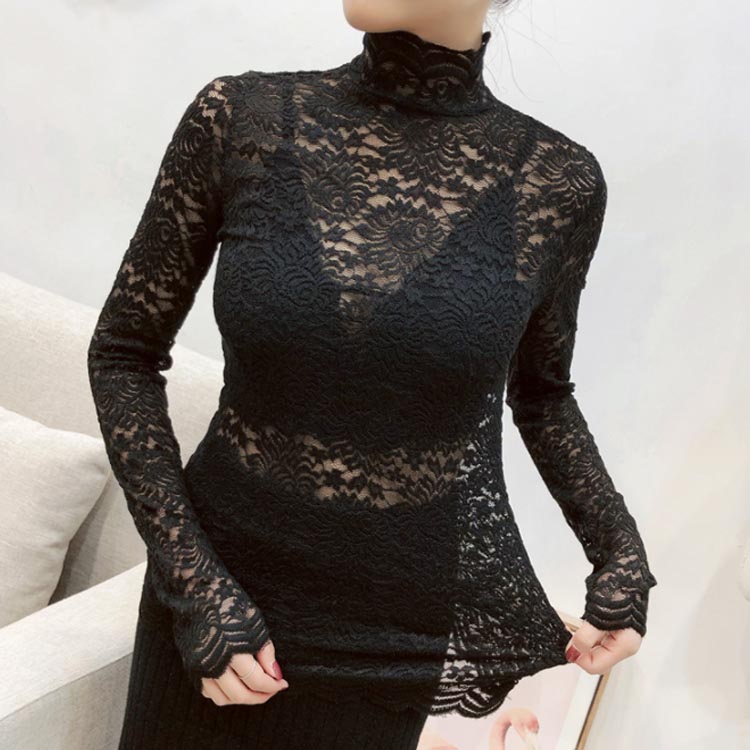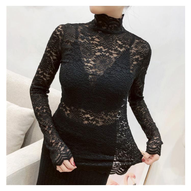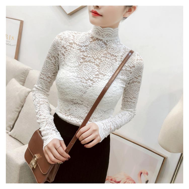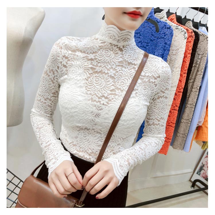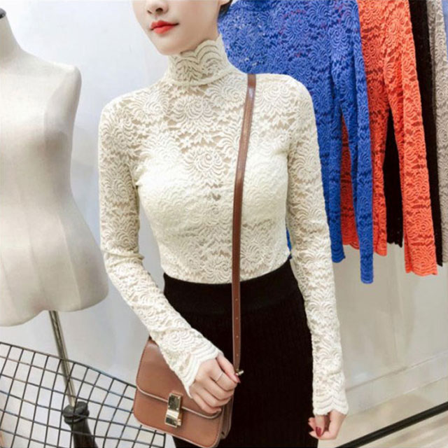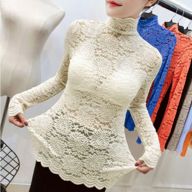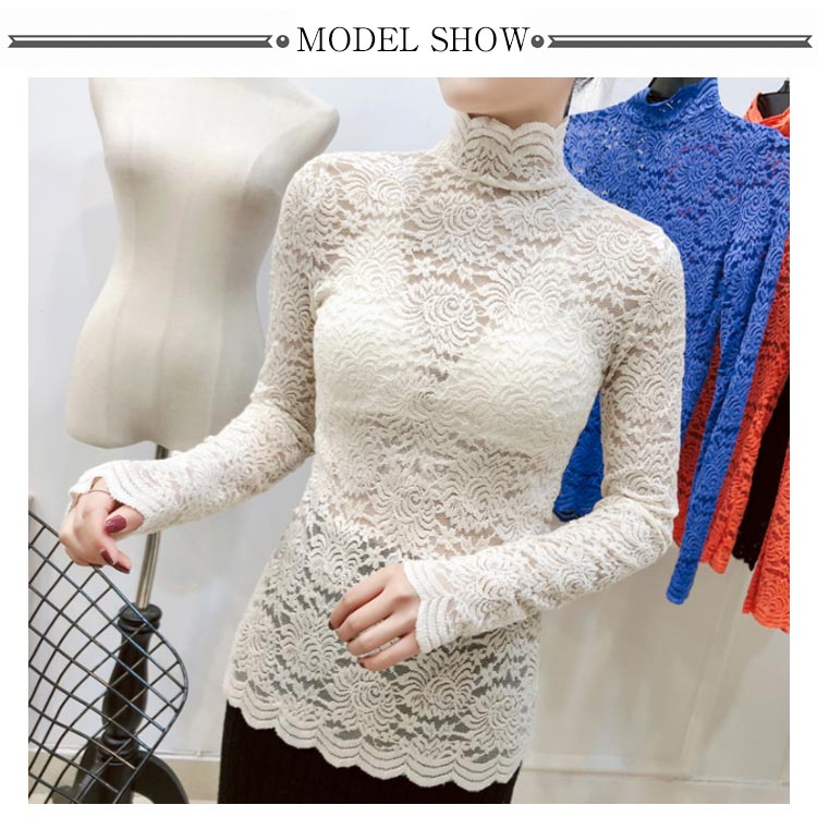 送料無料 総レース トップス 長袖 透かし 花柄レース カットソー レディース ハイネック 透け感 フラワーレース 刺繍ブラウス ストレッチ 伸縮性 透かしレース インナー レイヤード シースル スカラップ 花柄 ベーシック セクシー スリム 20代 30代 40代 50代 秋 冬 春