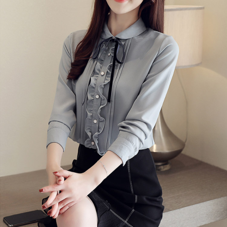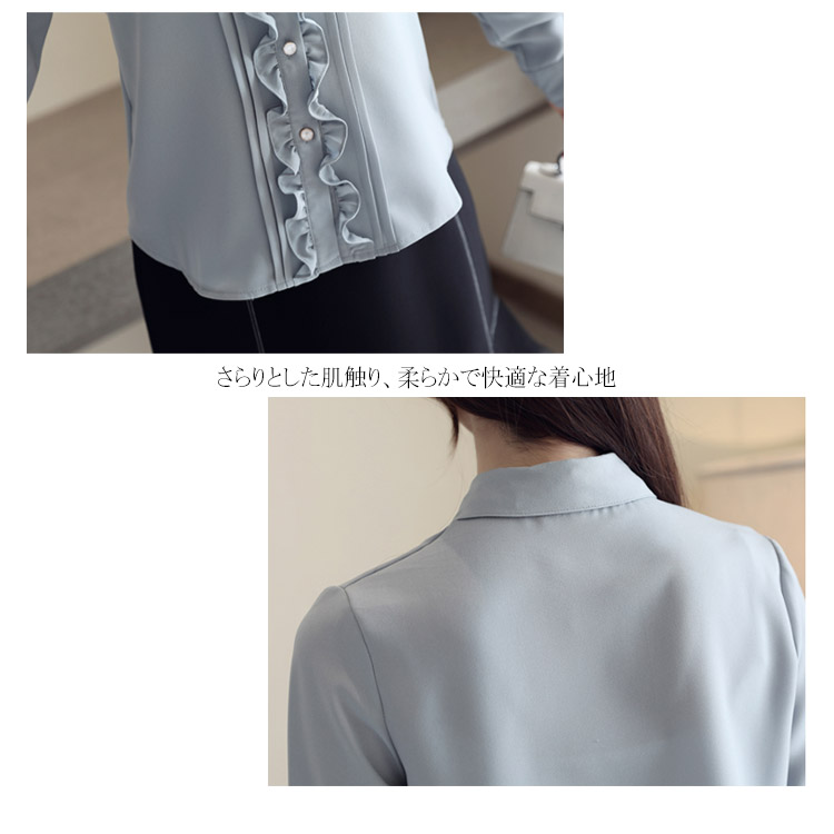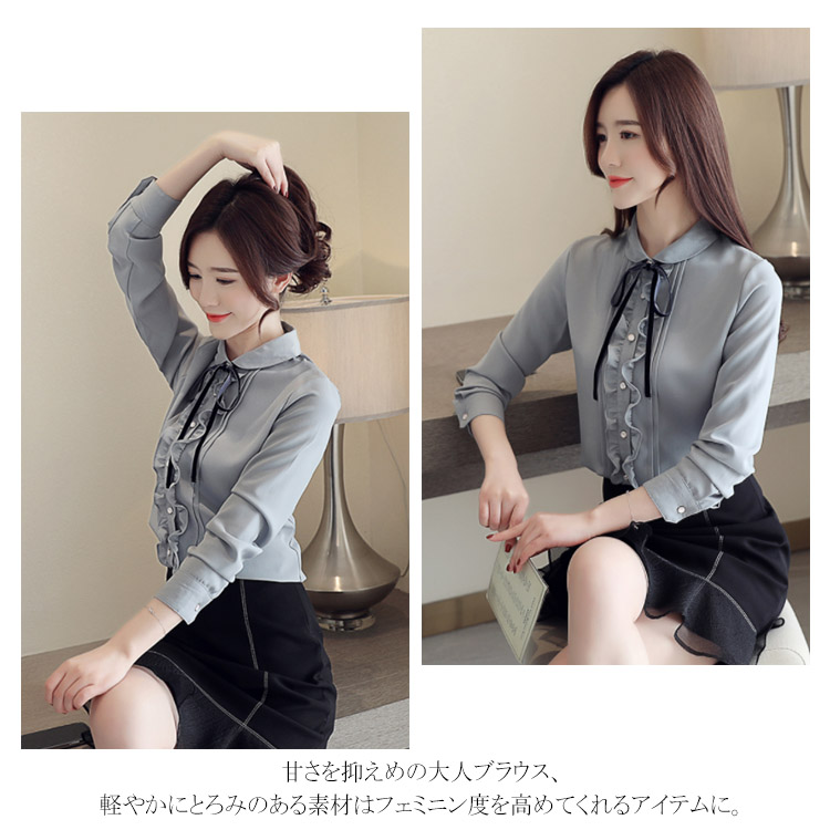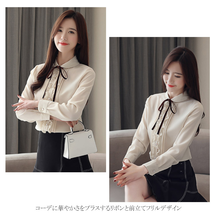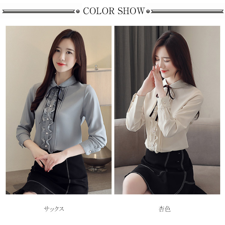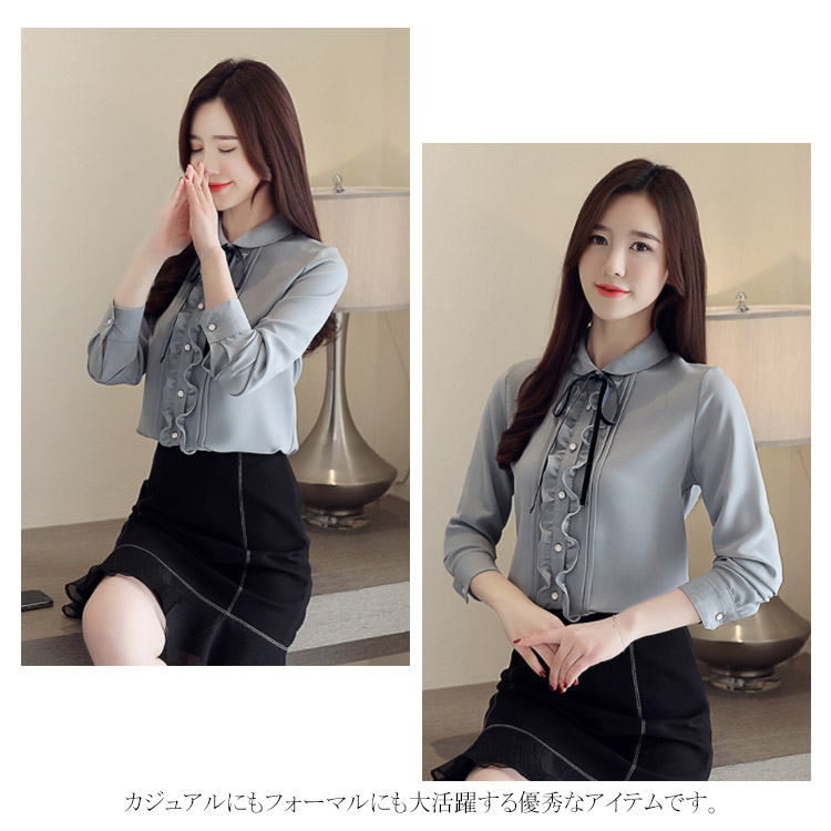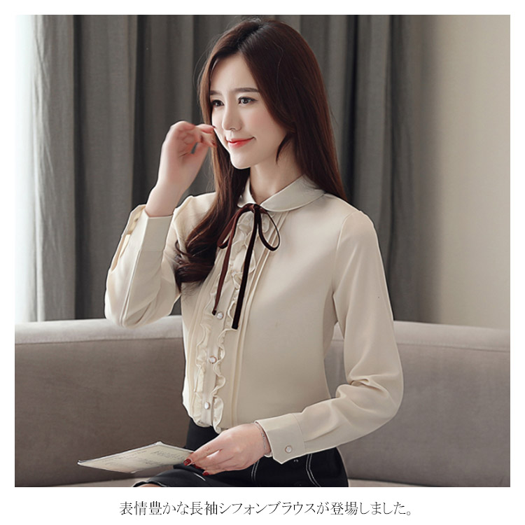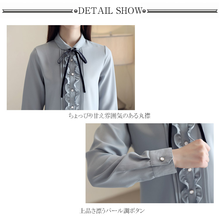 送料無料 シャツブラウス シフォン ブラウス 前たてフリル 長袖シャツ 長袖ブラウス レディース 丸襟 リボン シフォン とろみ シワになりにくい ドレープ 春 秋 カジュアル フォーマル 大きいサイズ 事務 オフィス お仕事 OL 通勤 お呼ばれ お出かけ オシャレ フェミニン