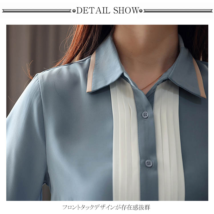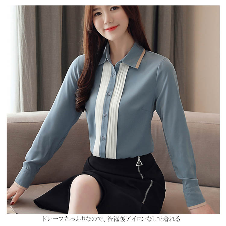 送料無料 ビジネス シャツ ブラウス レディース 長袖 トップス 前立てタック シフォン 長袖ブラウス バイカラー とろみ オフィス ブラウス 長袖シャツ フリル フェミニン 大きいサイズ 大人 通勤 OL カジュアル フォーマル 春 秋冬