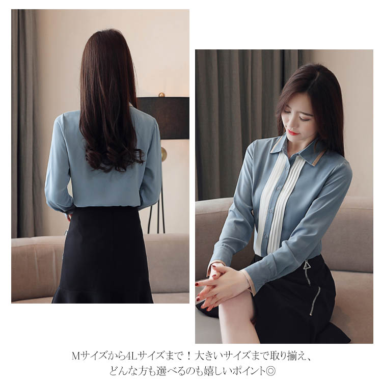 | ビジネスシーンもオシャレに着られシャツブラウス。 前立てタックをあしらい、モードな雰囲気が溢れる大人長袖ブラウス。 オフィスからカジュアルまで洗練されたデザインが大人女子に大人気。 襟と袖口の色切替デザインがセンスあり、他と差を付けるから、オシャレ決まり。 とろみのある素材で、シワになりにくく、お手入れ簡単だから、働き女にとって嬉しいポイント◎ Mサイズから4Lサイズまで!大きいサイズまで取り揃え、どんな方も選べるのも嬉しいポイント◎ | |