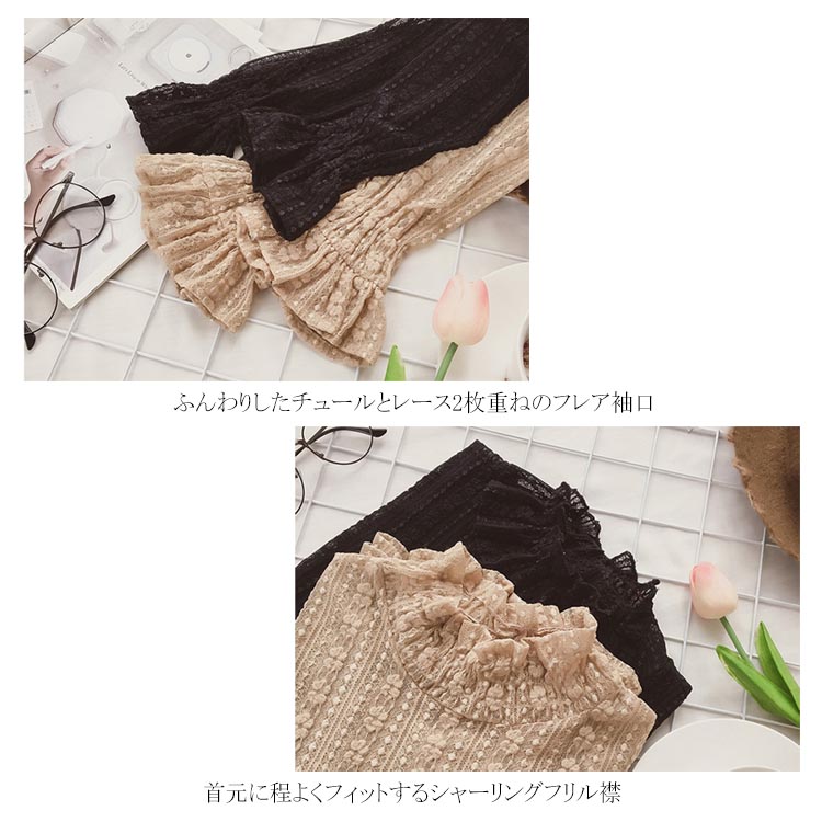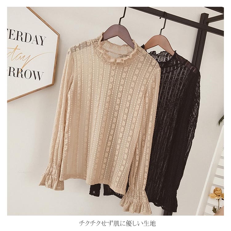 送料無料 大人フェミニンな肌見せ♪ 総レースブラウス シースルーレース ブラウス トップス 長袖 総レース 長袖トップス カットソー 大きいサイズ レディース インナー フレア袖 重ね着 レイヤード フリル フレア袖 スカラップ裾 花柄レース プルオーバー 刺繍レース 秋 冬 春 夏 お姫様 透かし セクシー コンシャス 20代 30代 40代 50代