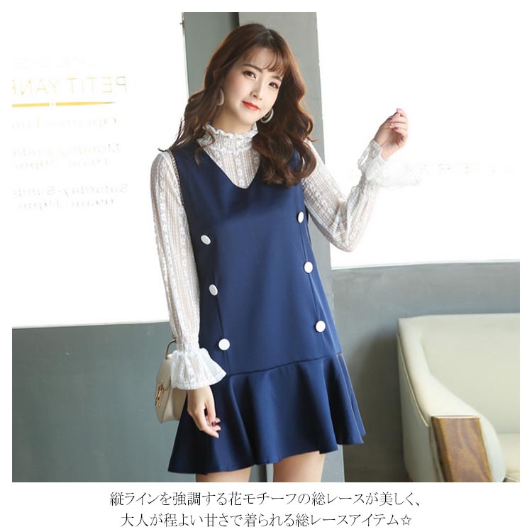 | 大きいサイズまで展開する透かしレースブラウス。 季節を問わず、カジュアルにもフォーマルにも大活躍する総レース長袖トップス。 縦ラインを強調する花モチーフの総レースが美しく、大人が程よい甘さで着られる総レースアイテム✩ ジャンパースカートやベアトップドレスに合わせてレイヤードが楽しめる♪ 上品で合わせやすい3カラー展開! これからの季節大活躍するから重宝します。 | |