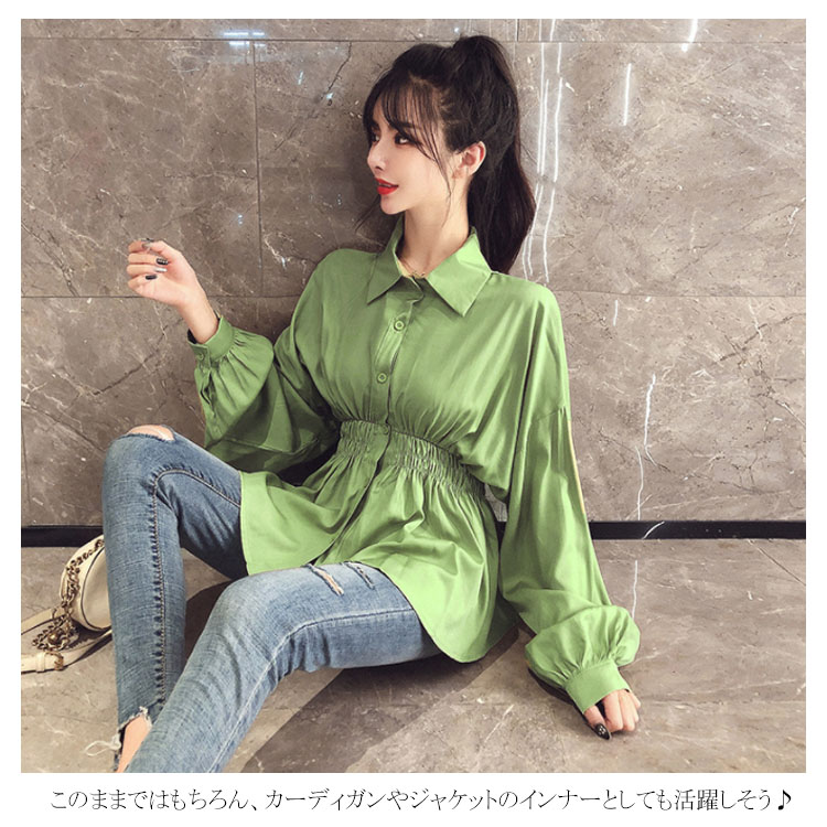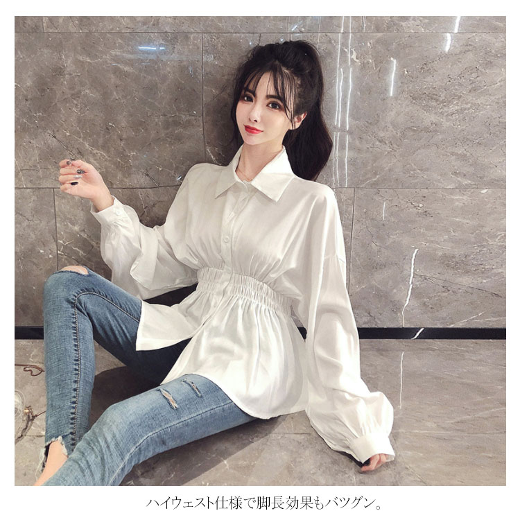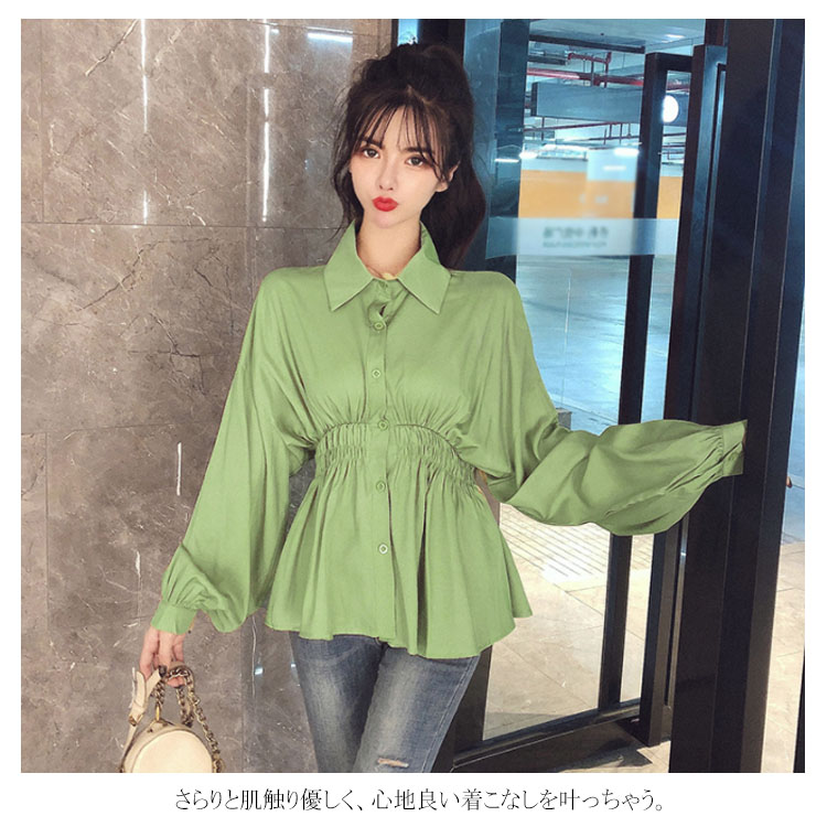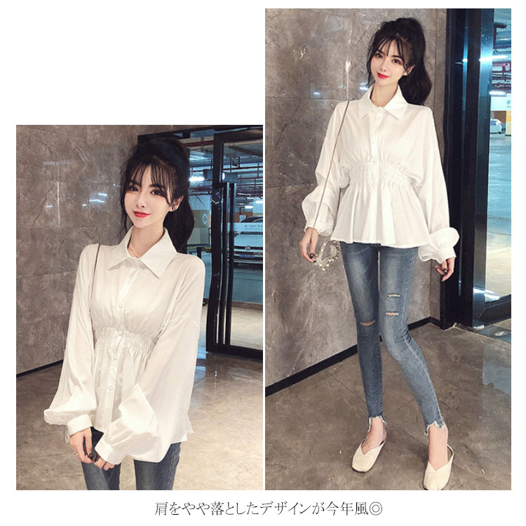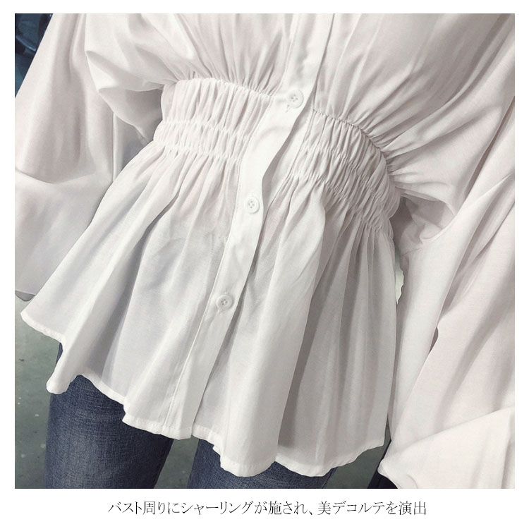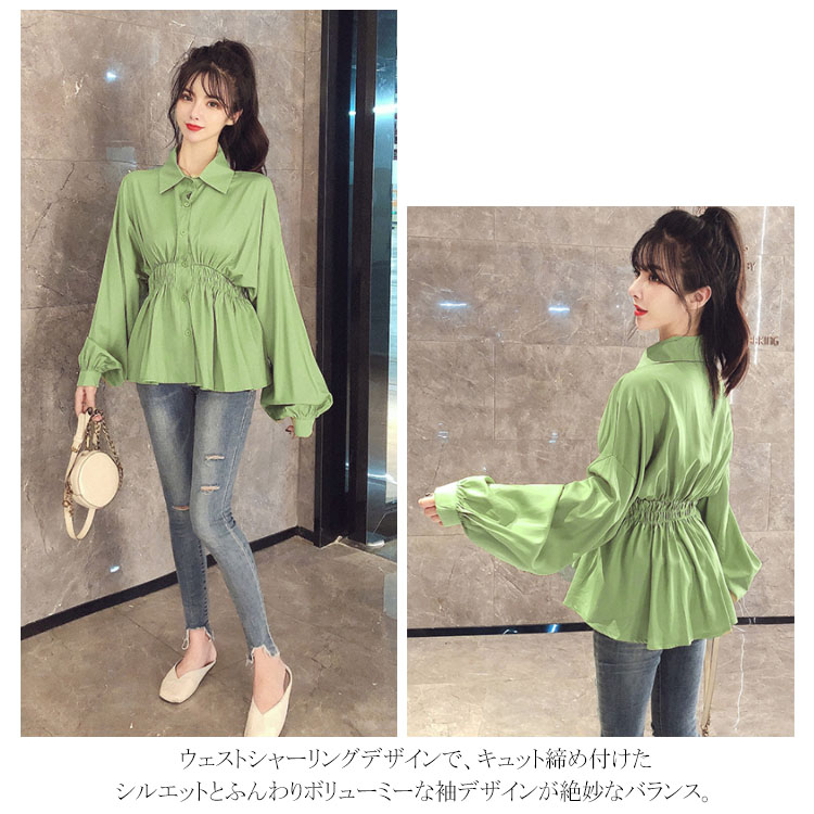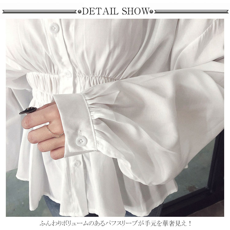 送料無料 ブラウス シャツブラウス パフスリーブ レディース トップス 無地 シンプル ウェストシャーリング ドロップショルダー バルーン袖 長袖 長袖ブラウス 可愛い おしゃれ 春 秋冬